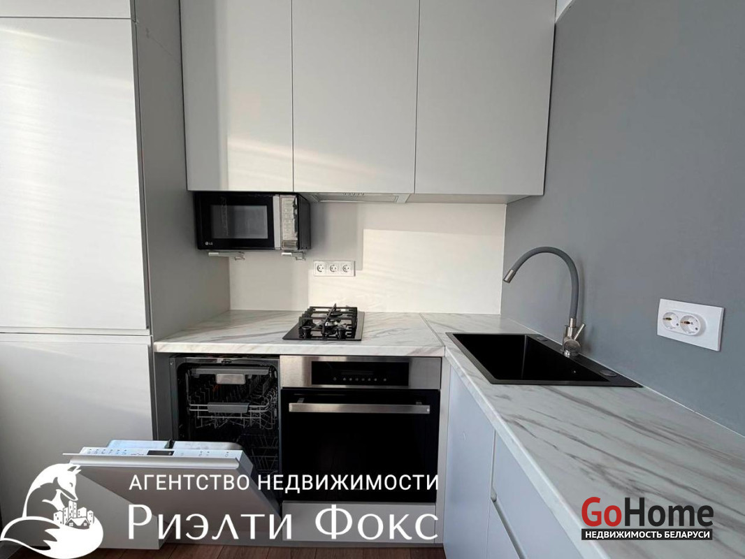 - полностью укомплектована мебелью и техникой: посудомоечная машина, стиральная машина, холодильник. Входная группа оборудована тёплым полом.
