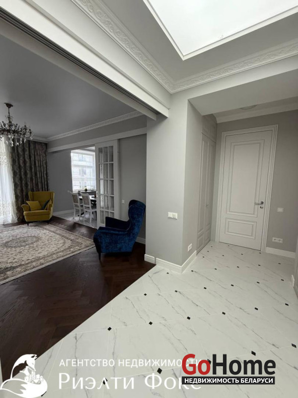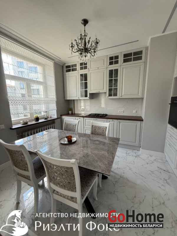 Квартира полностью укомплектована всей необходимой мебелью и техникой (посудомоечная машина, стиральная машина с функцией сушки, водонагреватель, холодильник). На полу в квартире - паркет (дуб) и плитка керамогранит. Обеденный стол выполнен из керамогранита. Размер кровати - 1800*2000, в спальне есть вместительная гардеробная. В квартире много мест для хранения. Толщина стен - 50 см, высота помещений - 2,95 м., есть балкон. Окна квартиры выходят на две стороны. Квартира готова к заселению.