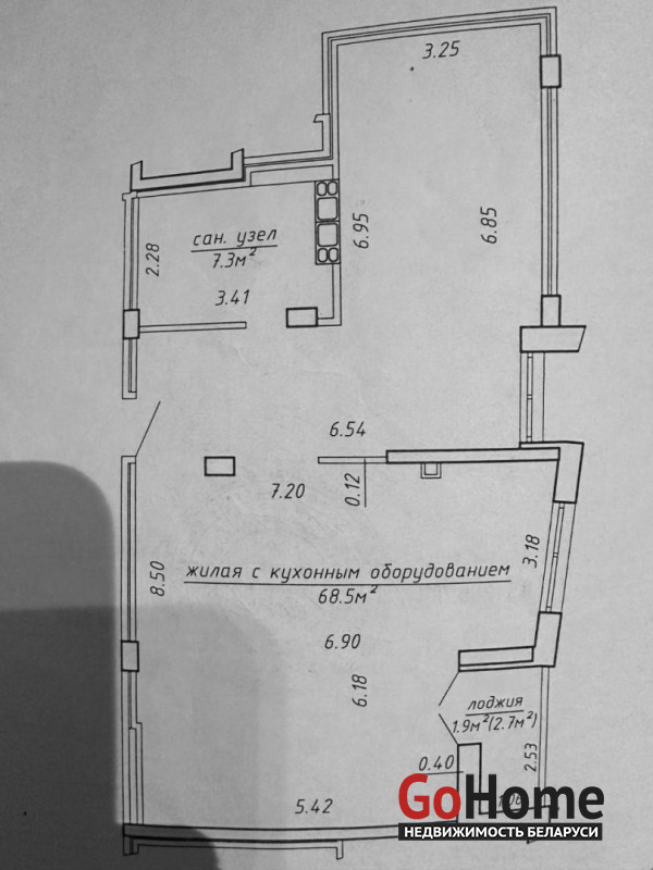 - жилая зона с кухонным оборудованием - 68,5 кв. м;