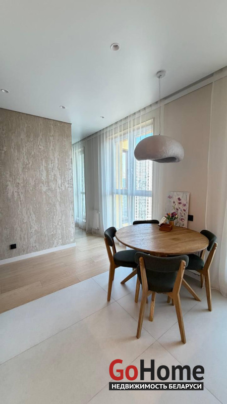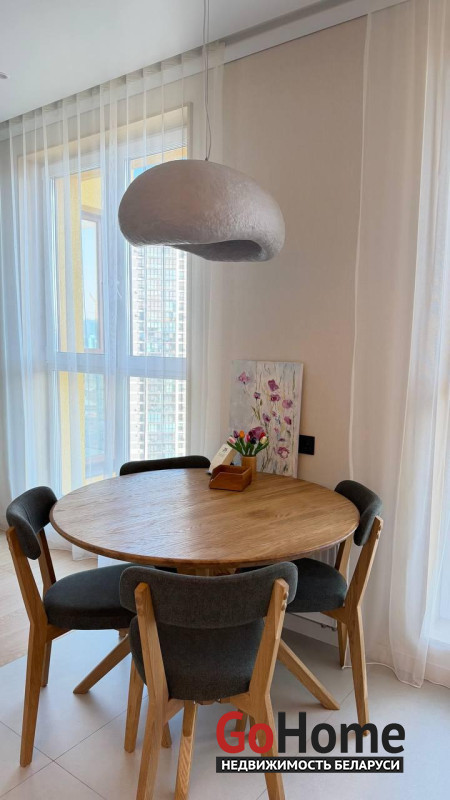 Благодаря высокому этажу и панорамным окнам в пол, квартира наполнена естественным светом.
