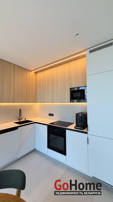 Квартира укомплектована встроенной мебелью выполненной по индивидуальному заказу и качественной бытовой техникой.