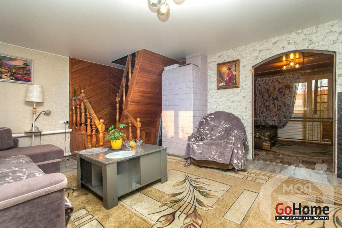 ️Уютный двухуровневый бревенчатый дом 110 м2 с кирпичной облицовкой, газовым отоплением, баней и гаражом на участке 9 соток — готов к комфортной жизни на Лесной улице в Молодечно.