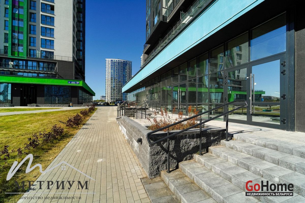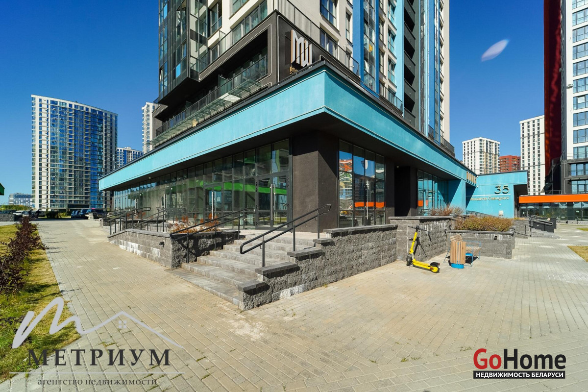 Помещение площадью 59,5 м2 располагается на 1-м этаже жилого дома по адресу: ул. Михаила Савицкого, 35. Помещение находится в доме Париж (квартал Западная Европа, ЖК «Минск Мир»).