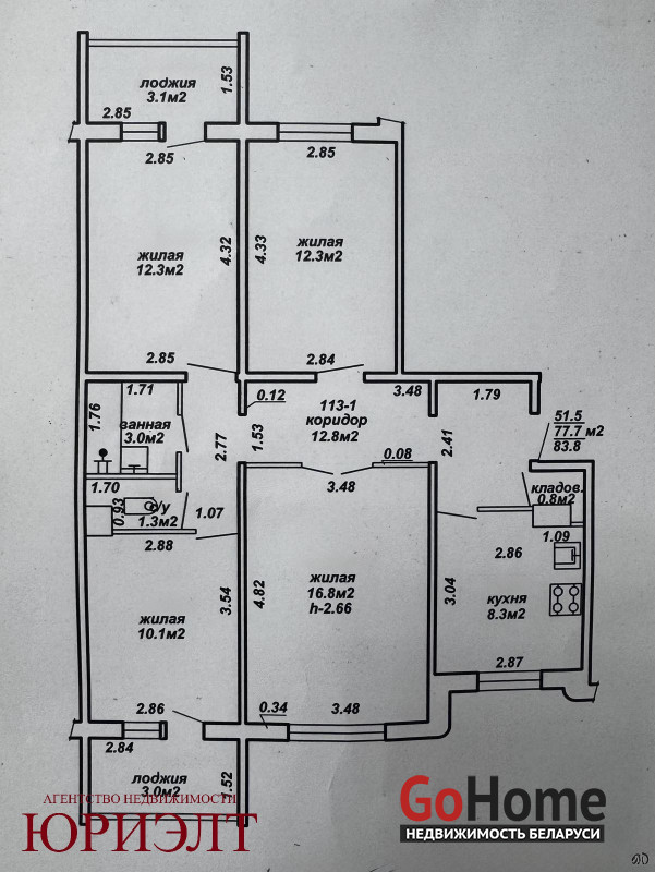 Просторная 4-комнатная квартира (78 м2) на 9 этаже — идеальный вариант для большой семьи!