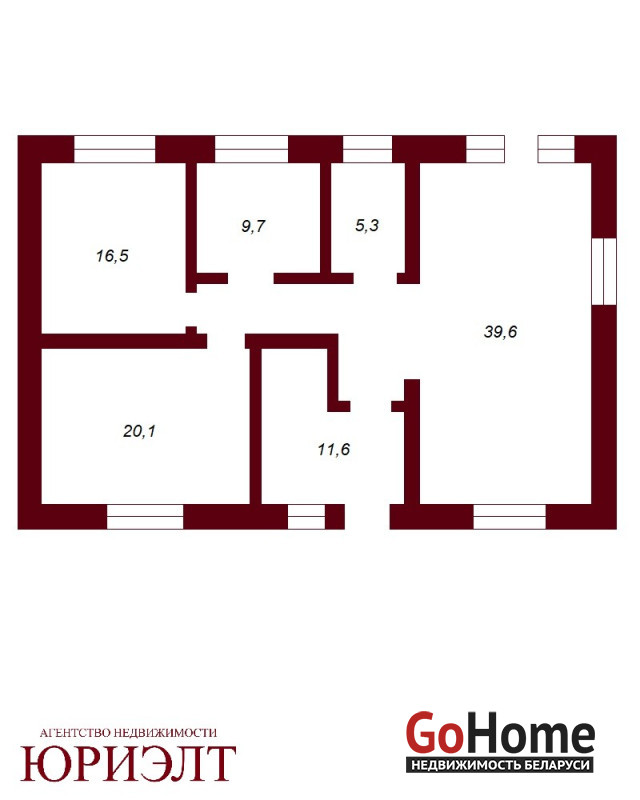 · Две спальни — 16,5 м² и 20,1 м²