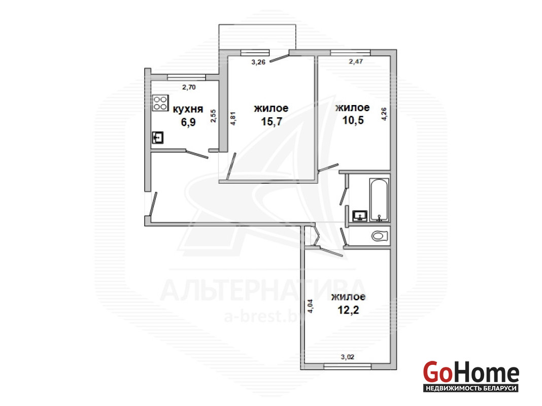 3-комнатная квартира, г. Брест, ул. Кирова, 1981 г.п., 2 / 9 кирпич, 62,6 / 61,7 / 38,4 / 6,9, санузел раздельный, балкон, деревянные стеклопакеты, деревянные межкомнатные двери, потолки - побелка, полы - ДСП, стены оклеены обоями, домофон. В квартире требуется ремонт. Чистый подъезд. Лот - 260461