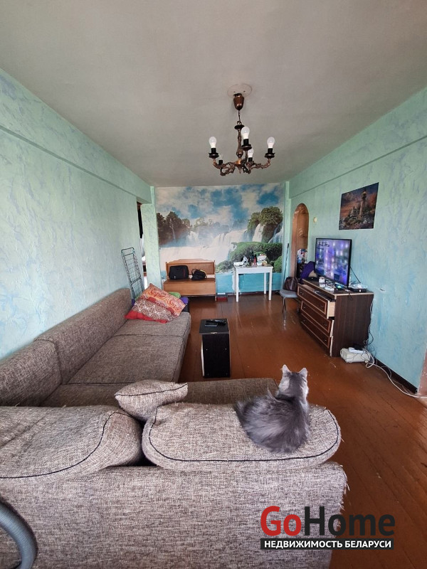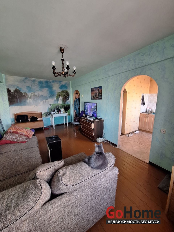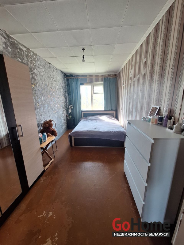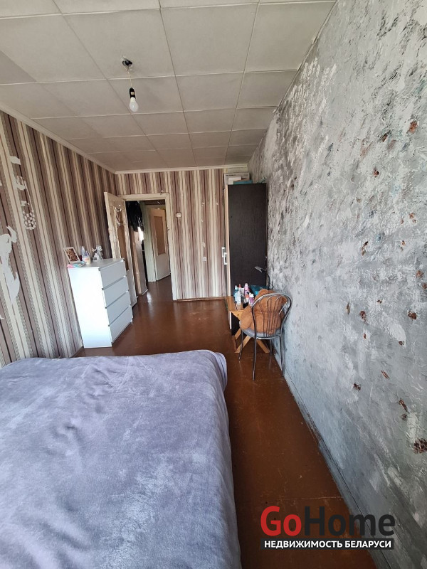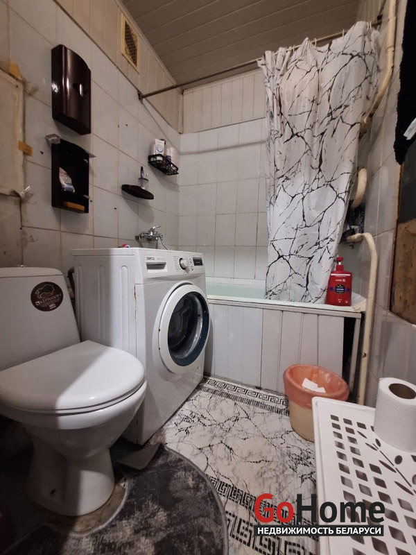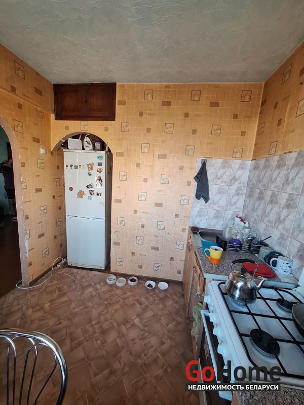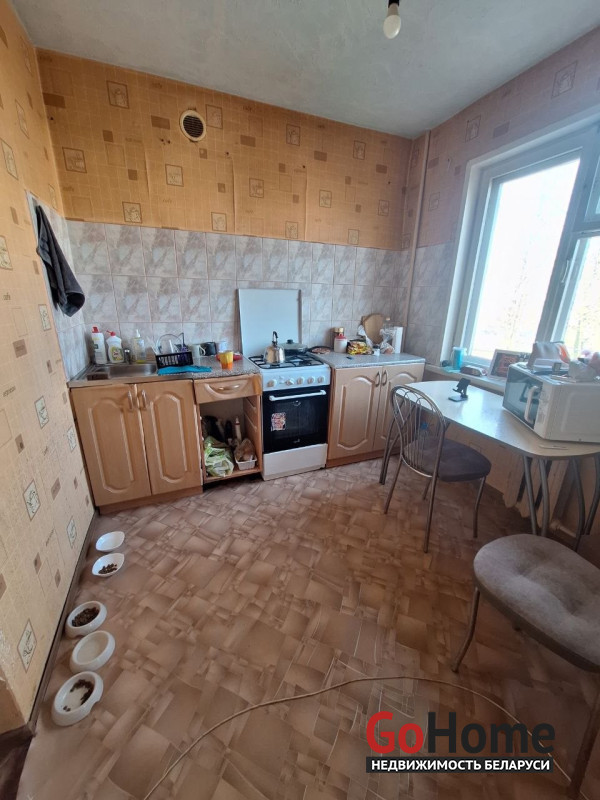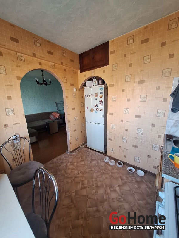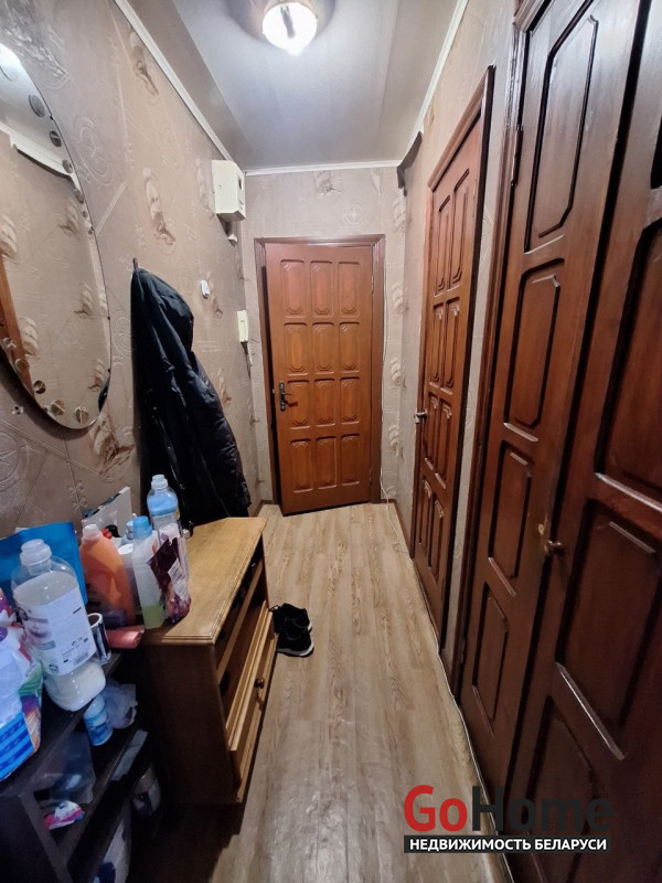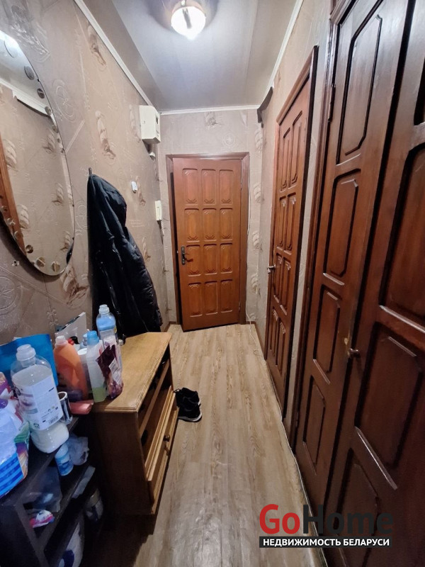 окна выходят на две стороны, одна комната проходная, есть вместительная кладовая («темная комната») 2.38 м². Санузел совмещенный. В квартире остается почти вся мебель и техника (холодильник, стиральная машина, кухонный гарнитур, прихожая, диван). Забираем только спальный гарнитур.