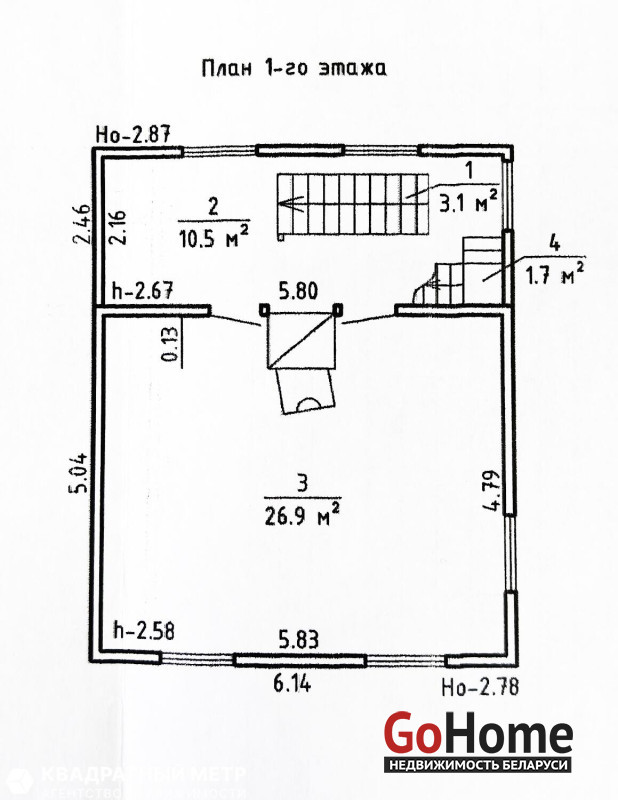 - первый этаж коридор -10.5кв.м. и жилая комната-26.9кв.м.- Общая площадь дома –73.9 кв.м.,