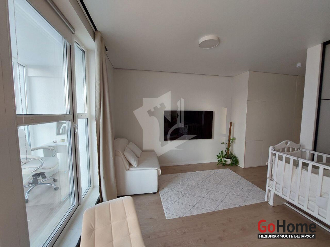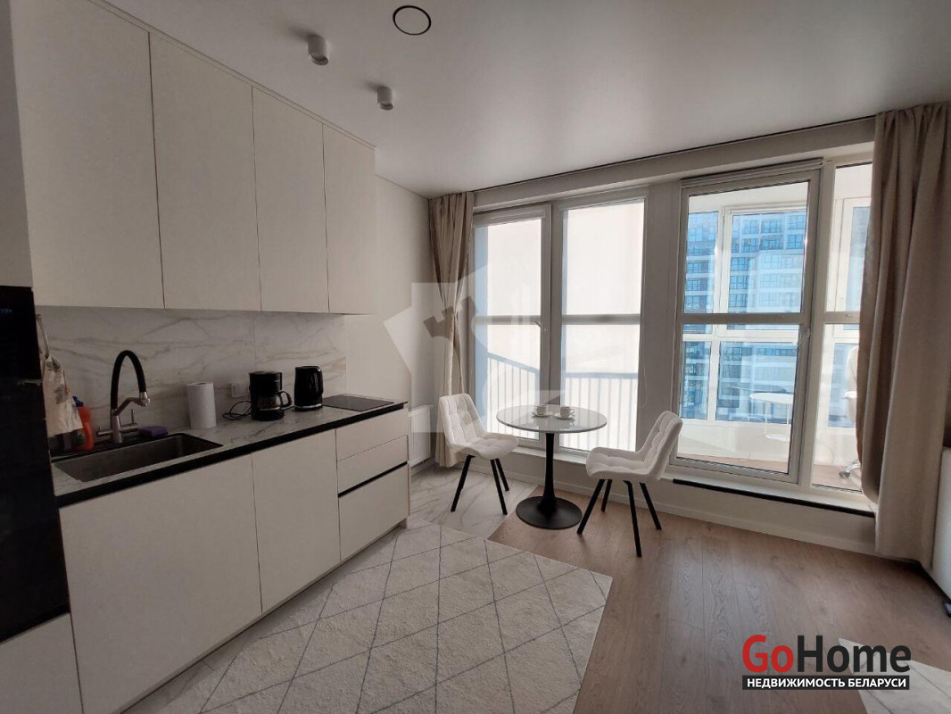 ЖК «Минск World», квартал «Центральная Европа» (ул. Николы Теслы, 20, комплекс «Белград»). Квартира с дизайнерским ремонтом — продаётся с мебелью и техникой. Есть терраса с видом, встроенная кухня, зоны отдыха и сна. Дом 2024 года: видеонаблюдение, бесшумные лифты. 1 минуты до м. «Аэродромная», 50 м до ТРЦ «Авия Молл». Рядом школа с бассейном, сад, магазины, кафе.