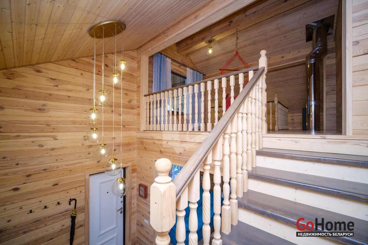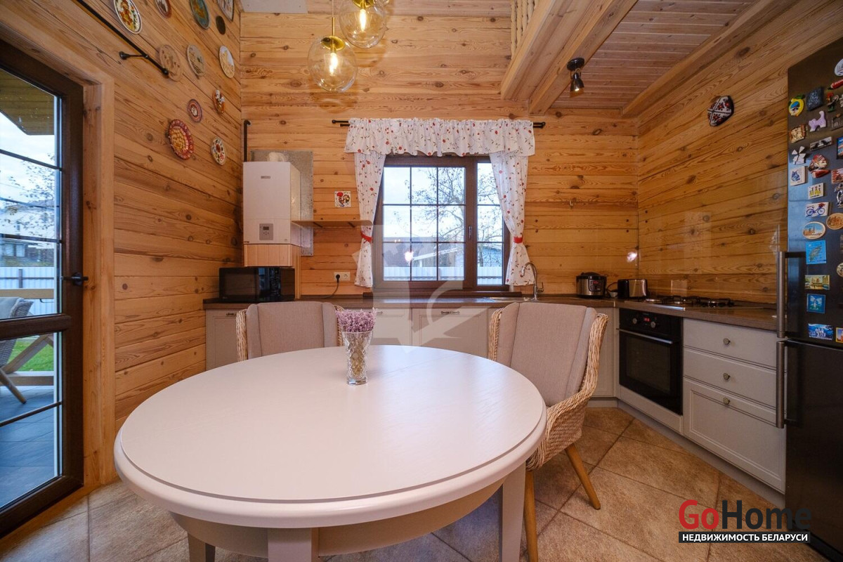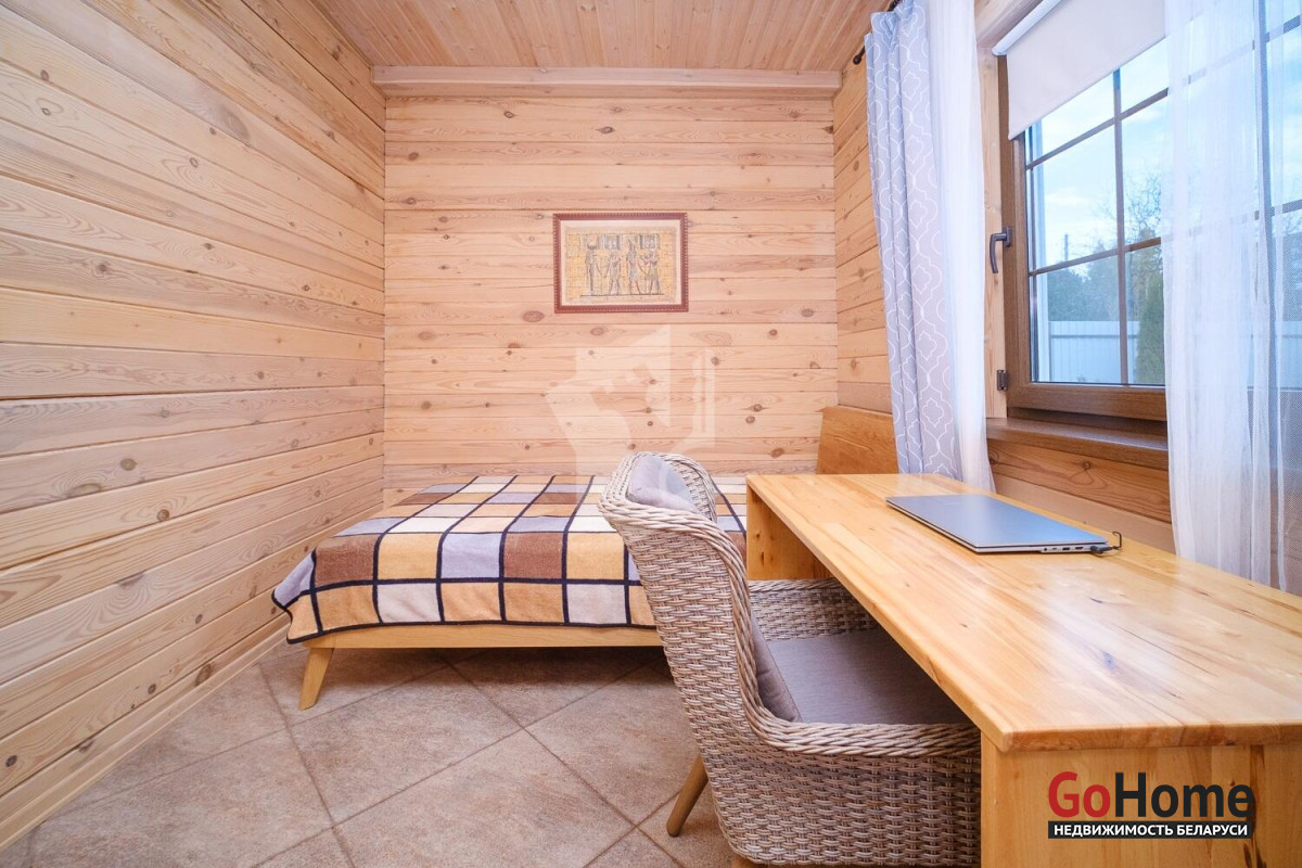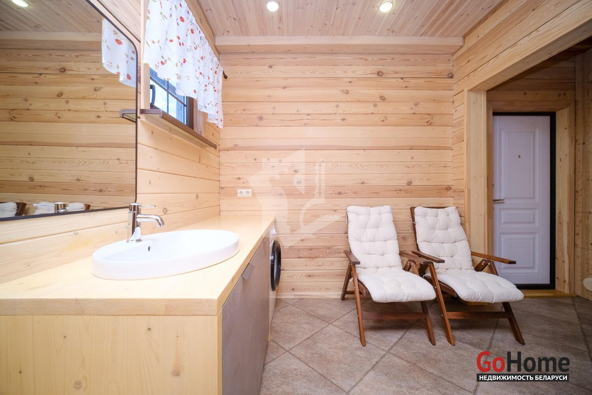 Продаётся качественный дом из профилированного бруса для круглогодичного проживания в живописном месте — рядом с грибным лесом и озером Селюты (пляжи и рыбалка).Что выделяет этот дом:• Построен только из высококачественных материалов (убедитесь при просмотре).• Полноценное отопление: газовый котёл с дистанционным управлением, тёплый пол на первом этаже + радиаторы на обоих этажах.• Собственная скважина, местная канализация.• Электрическая сауна с комнатой отдыха и душем на первом этаже.• Сигнализация, выходы для видеонаблюдения, уличное освещение, усилительная антенна.Планировка и ремонт:• 1 этаж: просторная кухня-столовая с техникой европейских брендов и выходом на террасу, гостиная со вторым светом, спальня с санузлом.• 2 этаж: большая спальня с санузлом, комната отдыха с качелями и видом на лес.• Открытая терраса с обеденной зоной, ландшафтный дизайн, полностью благоустроенный участок 8 соток.Участок и инфраструктура:• Полностью огорожен, откатные ворота с электроприводом.• Закрытый сарай-мастерская с погребом, навесы для дров и летней кухни, просторная парковка с розеткой для электромобиля.• Плодовые деревья, цветы, кустарники, место под огород.• Современное товарищество: автоматический шлагбаум, камеры и освещение на улице, чистка дорог зимой, вывоз мусора 6 месяцев в году. Многие живут постоянно, соседи культурные и доброжелательные. Расположение: 10 минут пешком до остановки общественного транспорта. Круглогодичное сообщение с Минском.Уникальное предложение — дом, где всё сделано на высшем уровне, полностью благоустроенный участок с техническими помещениями и техникой для обслуживания, потрясающая природа. Идеальное место для жизни и отдыха.Не упустите возможность стать владельцем этого дома! Мы с радостью покажем объект и поможем с оформлением.