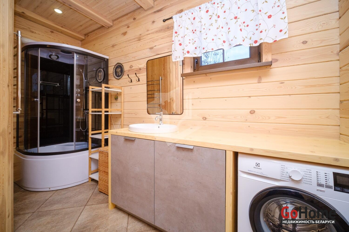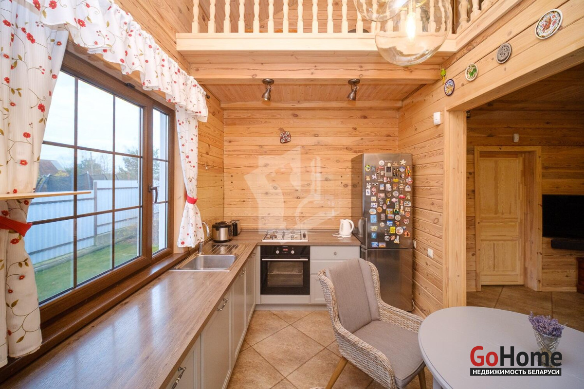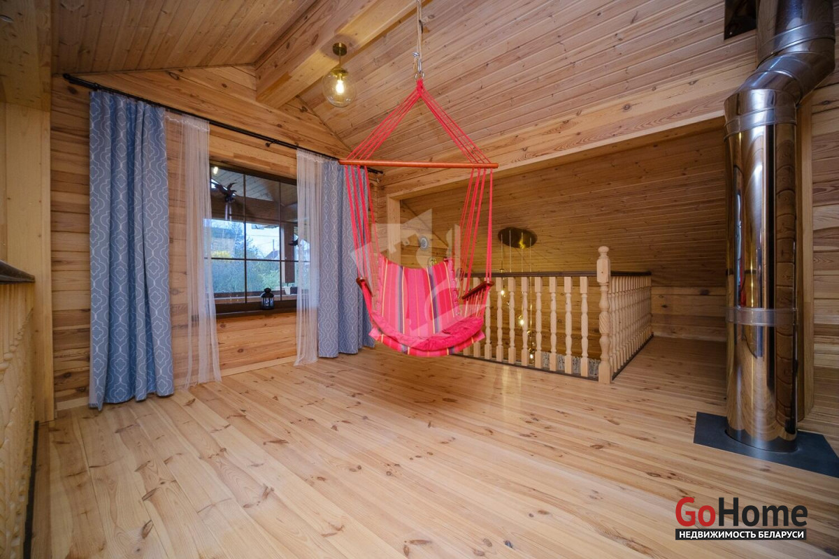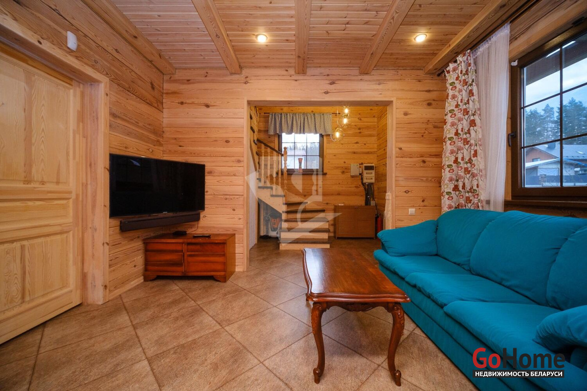 Продаётся качественный дом из профилированного бруса для круглогодичного проживания в живописном месте — рядом с грибным лесом и озером Селюты (пляжи и рыбалка).Что выделяет этот дом:• Построен только из высококачественных материалов (убедитесь при просмотре).• Полноценное отопление: газовый котёл с дистанционным управлением, тёплый пол на первом этаже + радиаторы на обоих этажах.• Собственная скважина, местная канализация.• Электрическая сауна с комнатой отдыха и душем на первом этаже.• Сигнализация, выходы для видеонаблюдения, уличное освещение, усилительная антенна.Планировка и ремонт:• 1 этаж: просторная кухня-столовая с техникой европейских брендов и выходом на террасу, гостиная со вторым светом, спальня с санузлом.• 2 этаж: большая спальня с санузлом, комната отдыха с качелями и видом на лес.• Открытая терраса с обеденной зоной, ландшафтный дизайн, полностью благоустроенный участок 8 соток.Участок и инфраструктура:• Полностью огорожен, откатные ворота с электроприводом.• Закрытый сарай-мастерская с погребом, навесы для дров и летней кухни, просторная парковка с розеткой для электромобиля.• Плодовые деревья, цветы, кустарники, место под огород.• Современное товарищество: автоматический шлагбаум, камеры и освещение на улице, чистка дорог зимой, вывоз мусора 6 месяцев в году. Многие живут постоянно, соседи культурные и доброжелательные. Расположение: 10 минут пешком до остановки общественного транспорта. Круглогодичное сообщение с Минском.Уникальное предложение — дом, где всё сделано на высшем уровне, полностью благоустроенный участок с техническими помещениями и техникой для обслуживания, потрясающая природа. Идеальное место для жизни и отдыха.Не упустите возможность стать владельцем этого дома! Мы с радостью покажем объект и поможем с оформлением.