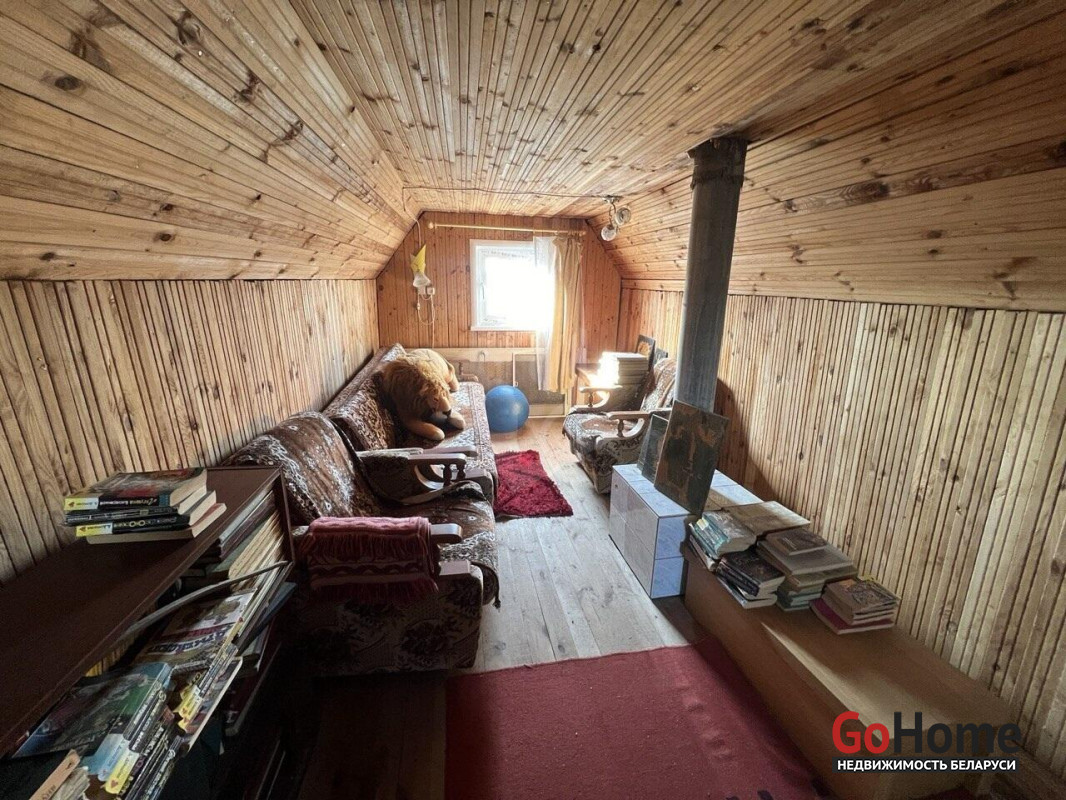 На первом этаже - просторная гостиная, спальня и светлая веранда для чаепитий. На втором этаже - еще одна жилая комната, отличное место для гостей или детской. В доме есть всё необходимое: мебель, рабочая печь, которая создает неповторимую атмосферу тепла. В подвале (по всему периметру дома) удобно хранить заготовки и инвентарь.