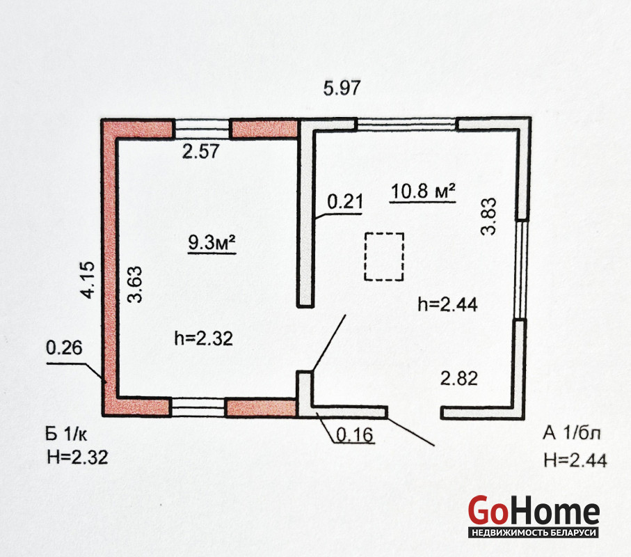 Высота потолков 2,44-2,32 м.