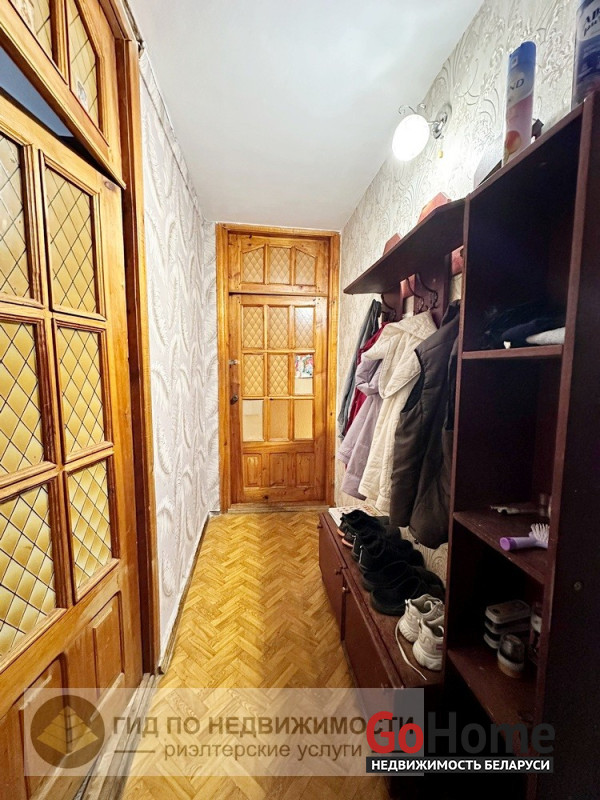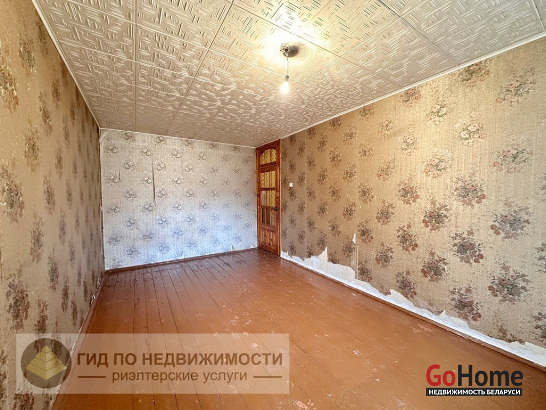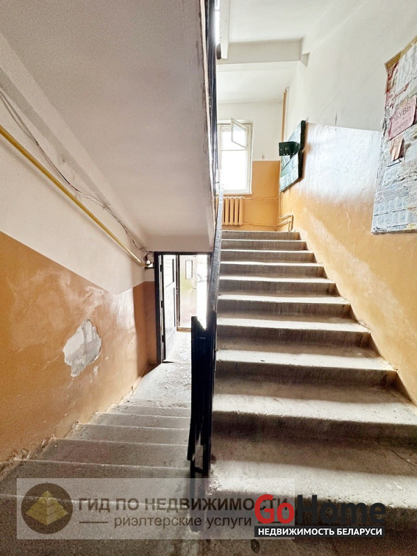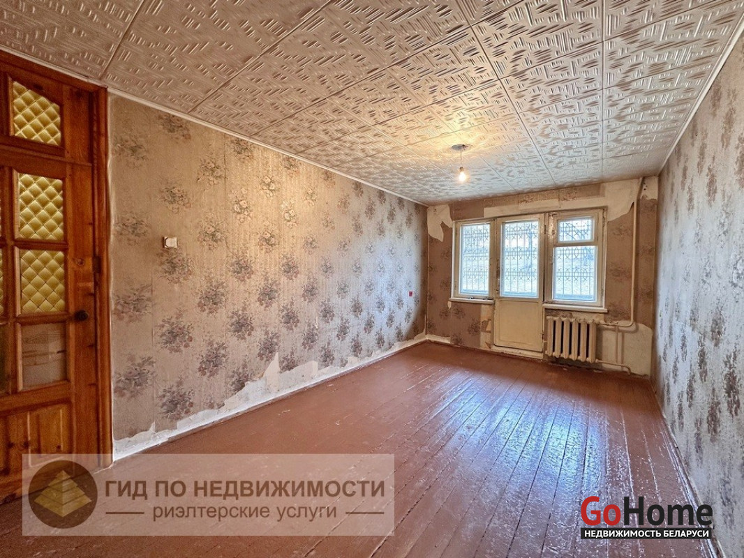Продается комната, площадью 17,2 кв.м. (61/100 долей в праве) с выходом на балкон, в двухкомнатной квартире в шаговой доступности от центра города, расположенная по адресу: г. Гродно, ул. Пушкина д. 38. Квартира находится на 1-ом этаже в 5-ти-этажном панельном доме, не угловая. Общая площадь квартиры 41,7 кв. м., кухня – 5,6 кв.м., сантехнический узел совмещен, просторный коридор площадью 5,4 кв.м. На балконе имеется небольшое подвальное помещение (погреб), а также в доме за квартирой закреплено подвальное помещение.
