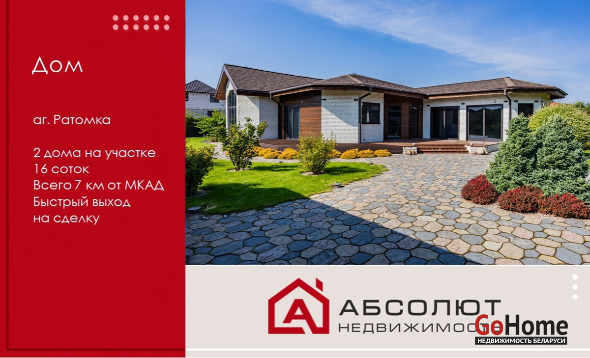 Продаётся современный дом 217 м2 в аг. Ратомка (7 км от МКАД), выезд в сторону Гродно, нет промзон, большой лесной массив.