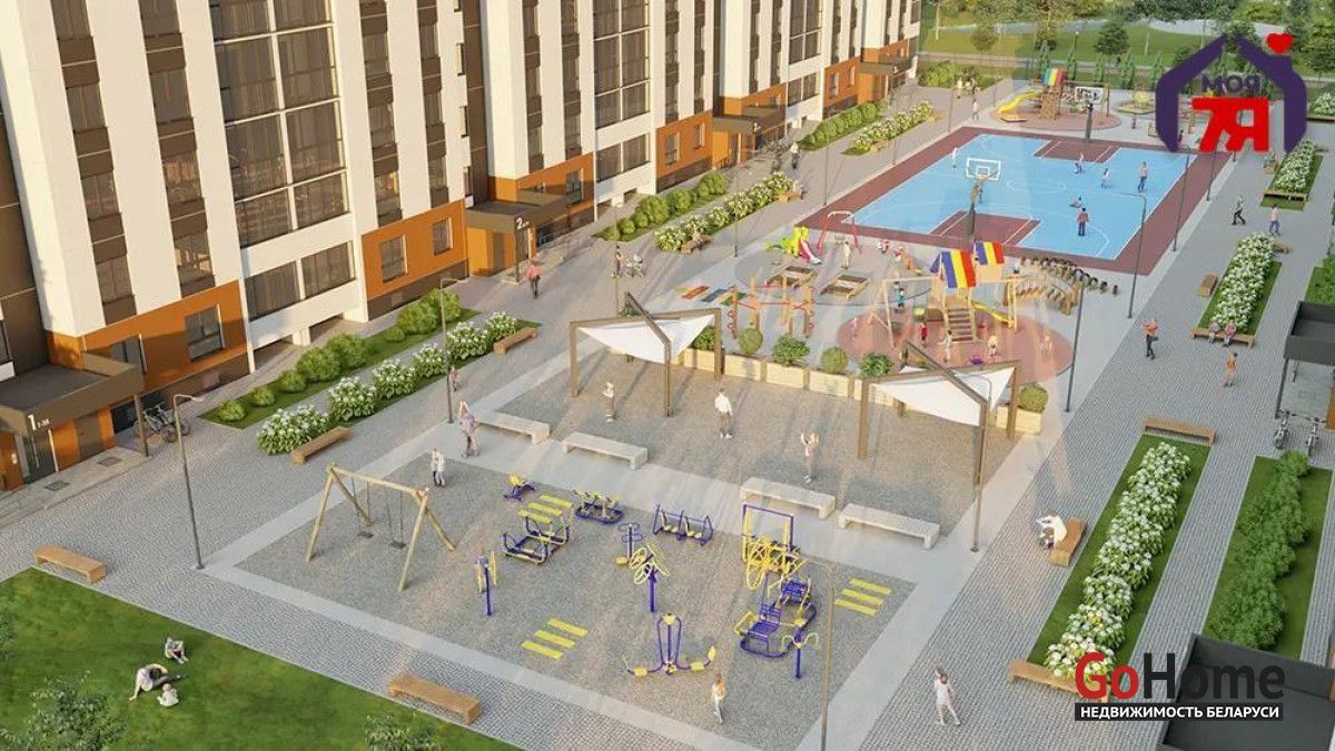 -Жилой комплекс состоит из трёх 5-этажных 4-подъездных панельных домов с однокомнатными квартирами 40 кв.м. и двухкомнатными 60 кв.м. Территория ограждена, предусмотрен прямой выход в парковую зону реки Лоша и безопасная пешеходная придомовая среда. Для каждой квартиры предусмотрено бесплатное машиноместо.