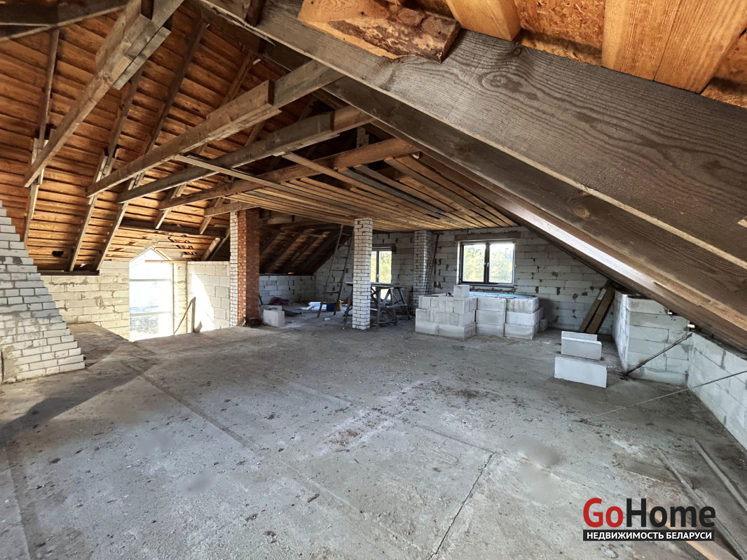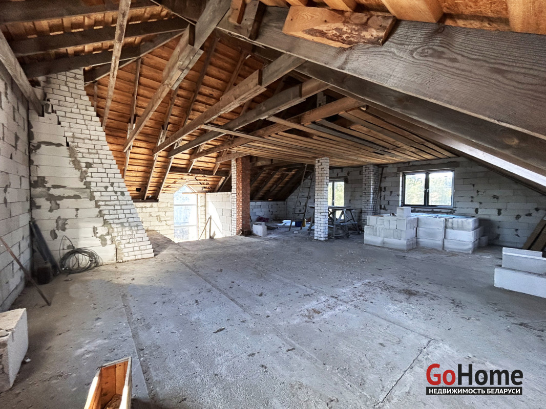 Просторный дом с мансардным этажом, подвалом и гаражом. Материал стен и перегородок - блок, перекрытия железобетонные. Крыша – битумная черепица. Окна ПВХ. Дом утеплен и оштукатурен. Проведены газ и электричество.