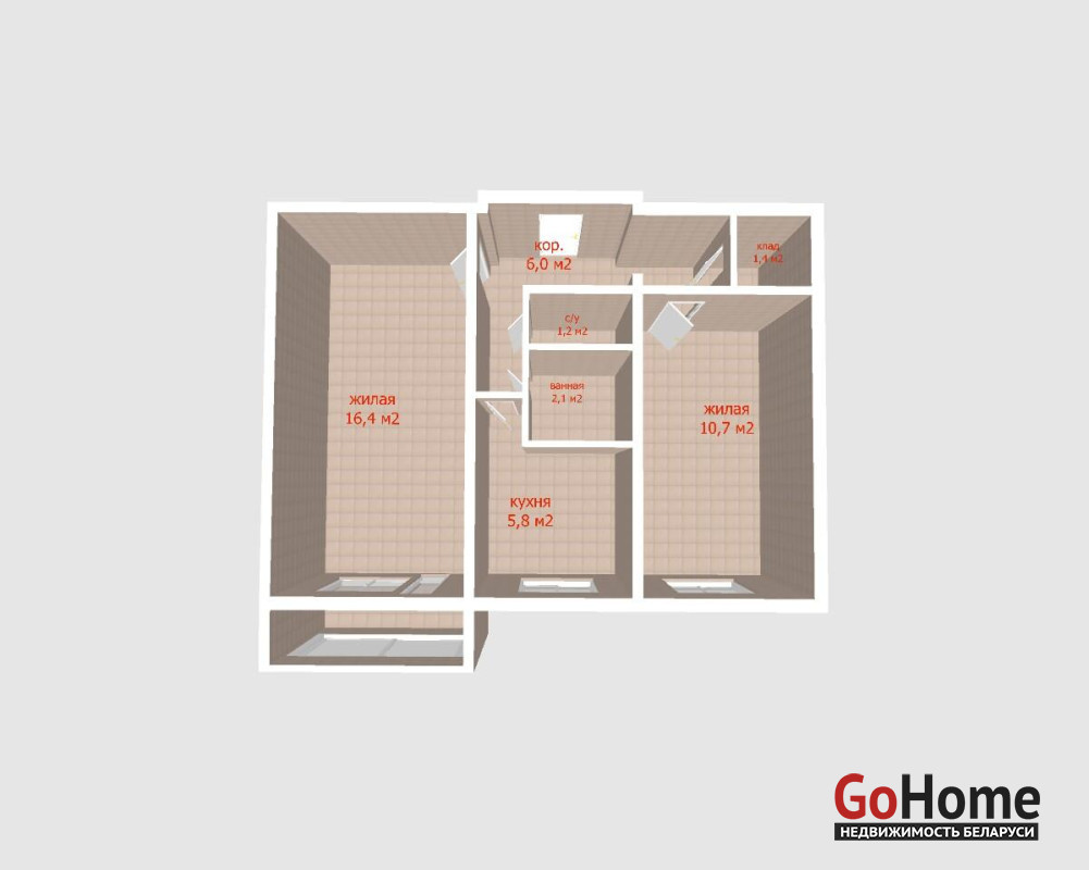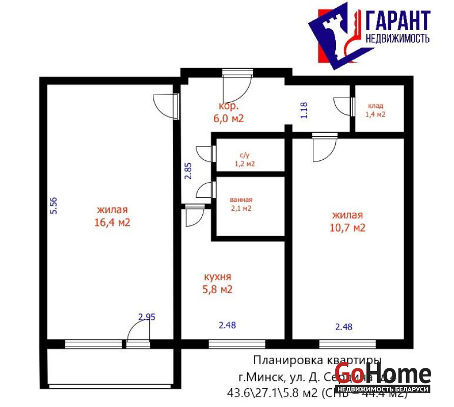 Квартира расположена на 4 этаже 6-этажного дома. Общая площадь составляет 44.4 кв. м. Планировка очень удобная: комнаты раздельные (16.4 кв. м и 10.7 кв. м), что обеспечивает комфортное проживание для семьи. Кухня площадью 5.8 кв. м, санузел раздельный. Окна квартиры выходят на тихий и зеленый парк, что создает атмосферу уюта и спокойствия. Квартира очень теплая и светлая.