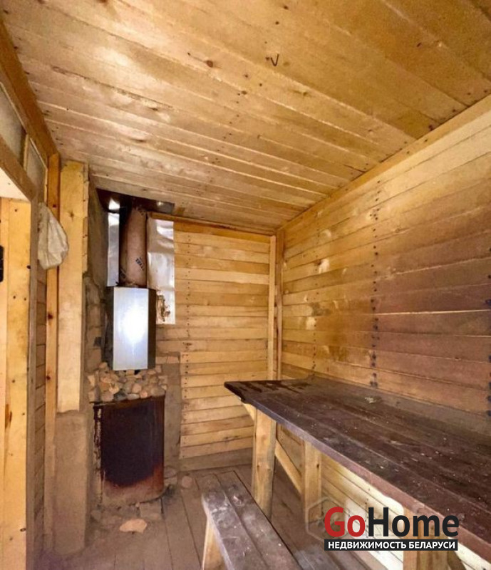 Санузел в доме совмещенный, с бойлером на 30 л , водоснабжение - скважина и колодец, канализация - местная, отопление - паровое, котел на дровах брикетах (запас на три зимы есть)