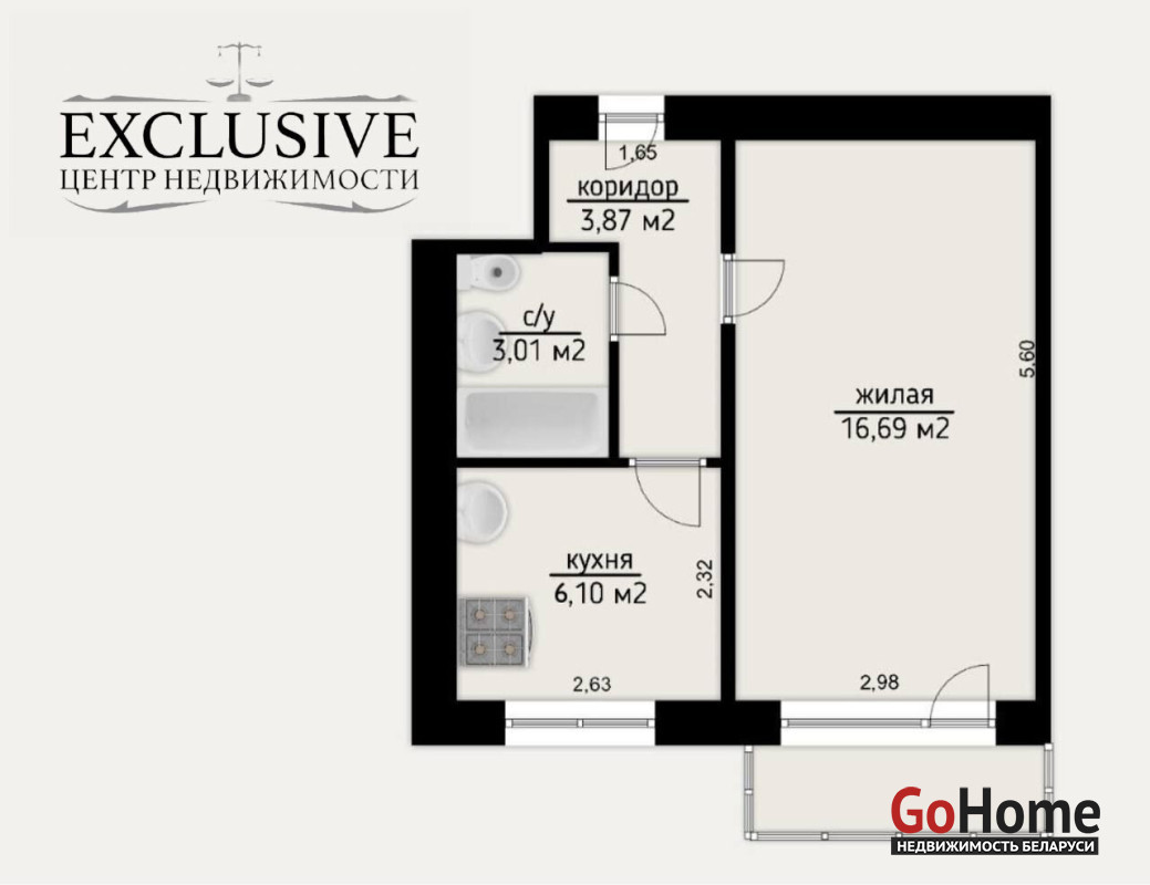Площадь: СНБ - 31 м2/ общая - 29,8 м2/ жилая - 16,8 м2/ кухня - 6,1 м2