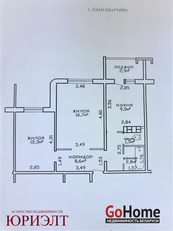 Планировка квартиры улучшенная. Площадь по СНБ 54,3 кв.м.