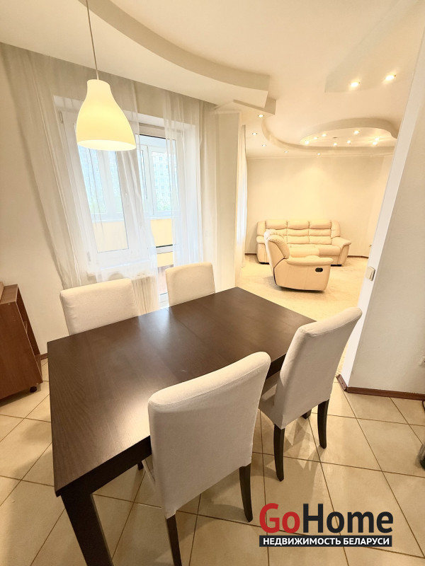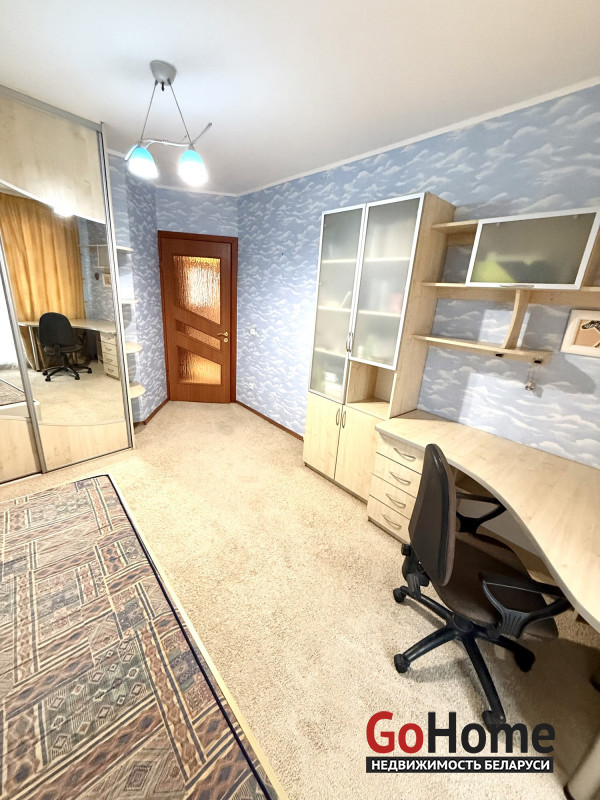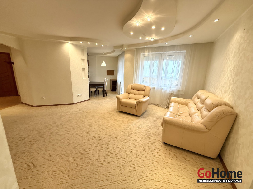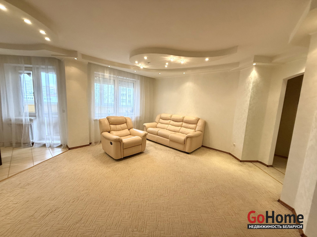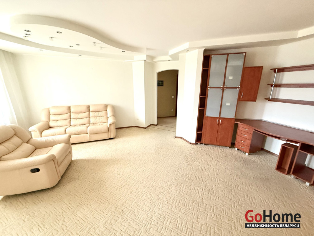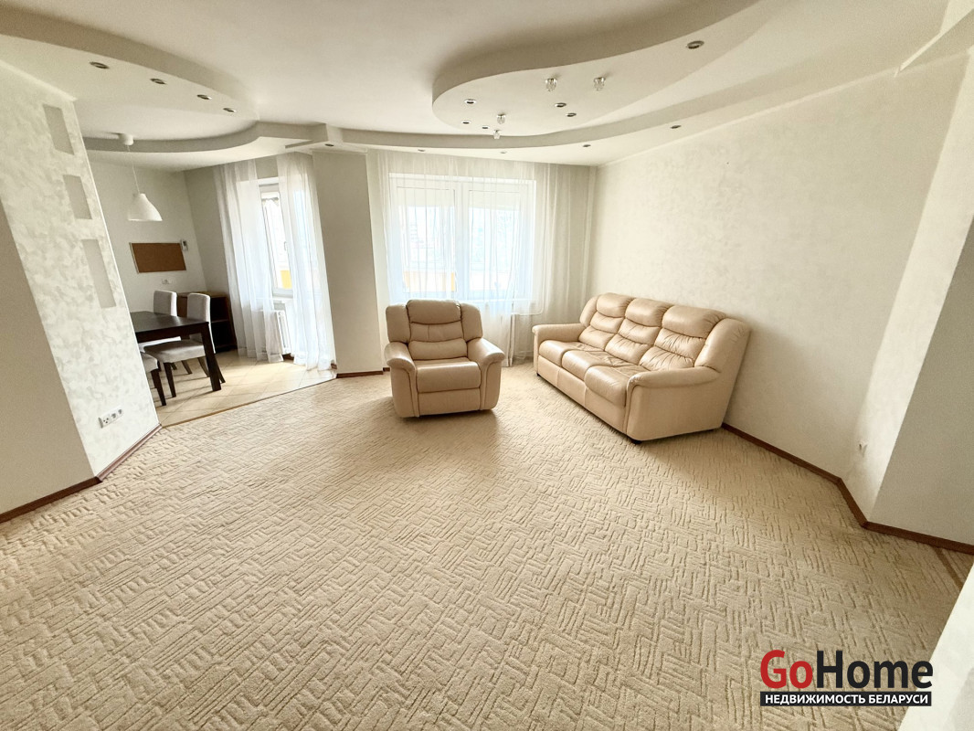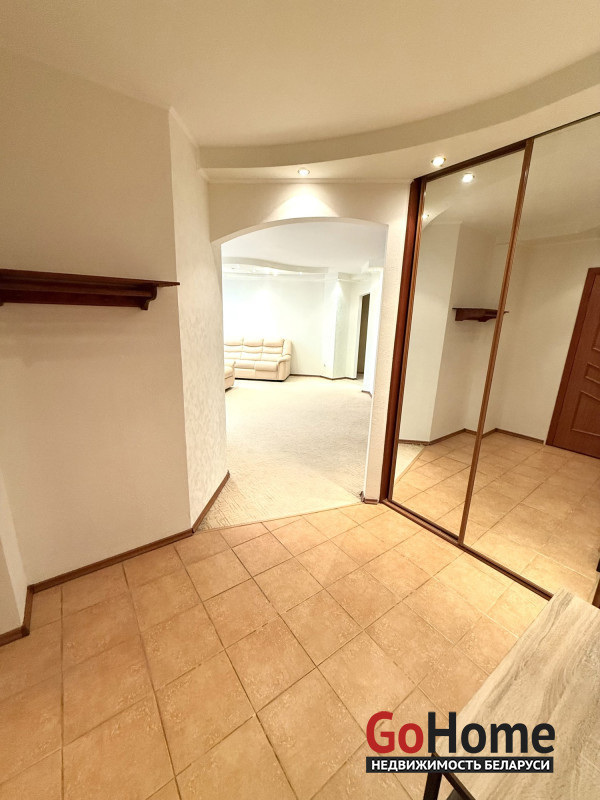 Продаётся редкая 4‑комнатная квартира нестандартной планировки в монолитном доме 2004 года по пр‑ту Клецкова, 5/12 этажа. Пространство организовано как полноценный семейный «дом в доме»: три изолированные спальни и большая гостиная, объединённая с кухней, образуют единую зону для общения и отдыха.