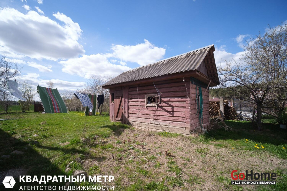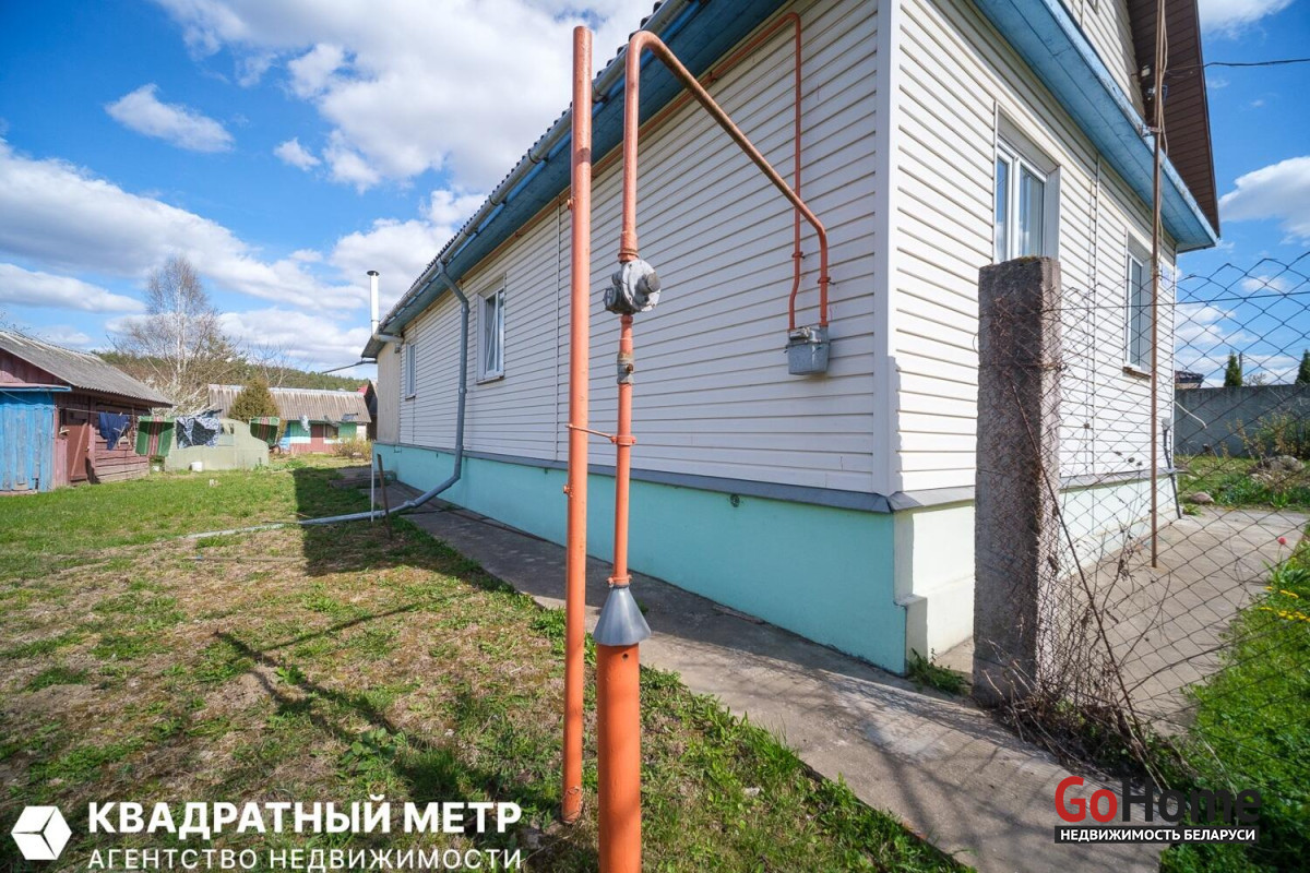 Площадь застройки дома 12.95*6.60. Фундамент кирпич., стены бревенчатые, перекрытия деревянные, кровля шифер, окна ПВХ. Дом обшит сайдингом. В доме есть подвал 22.00 м. кв. На участке есть хозпостройки.
