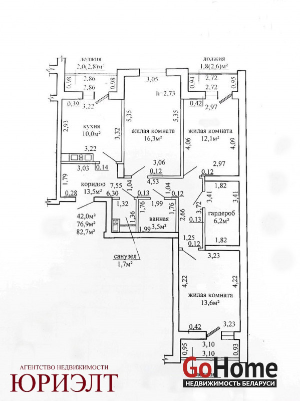 Общая площадь - 76.9 м2, жилая 42 м2, кухня 10 м2, три застекленных лоджии, все окна и рамы - ПВХ. Санузел раздельный. Дополнительно имеется отдельная комната-гардероб без окна площадью 6.2 м2 с отдельным отоплением. Квартира расположена на 13-м этаже 14-этажного монолитного дома, с ремонтом от застройщика: обои, натяжные потолки, ламинат. В подъезде два лифта - пассажирский и грузовой, из подъезда два выхода - на улицу и во двор. В квартире установлены батареи с возможностью регулировки температуры, также имеется теплосчетчик.
