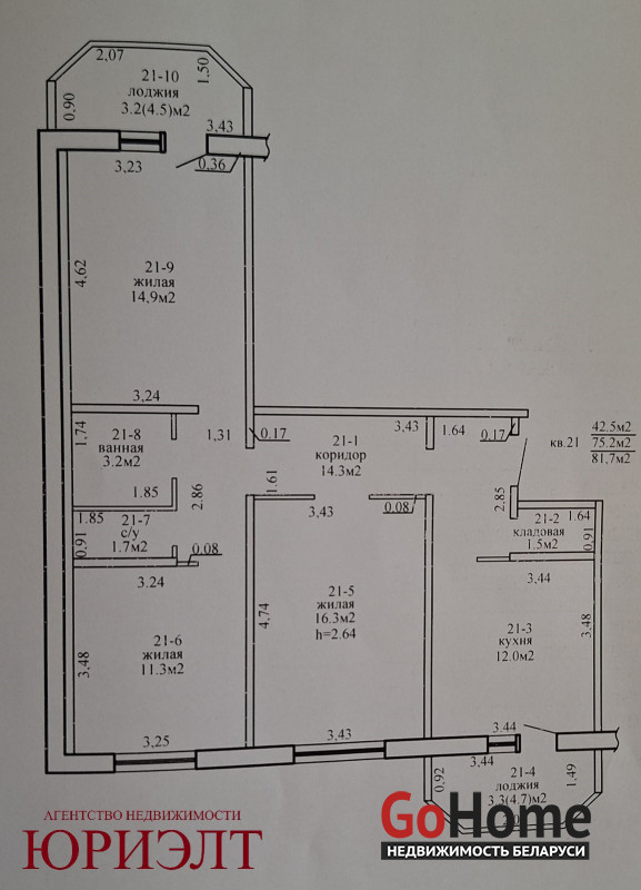 Жилая площадь 42,5 м2, кухня 12 м2, 2 лоджии, санузел раздельный, кладовая. Все окна ПВХ; на полу в кухне, коридоре, санузеле плитка керамическая; стены зашпаклеваны; входная дверь металлическая. Установлены приборы учёта воды, газа, отопления, электроснабжения; видео домофон; видео наблюдение по периметру дома.