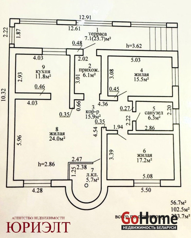 Общая площадь 233.7 м