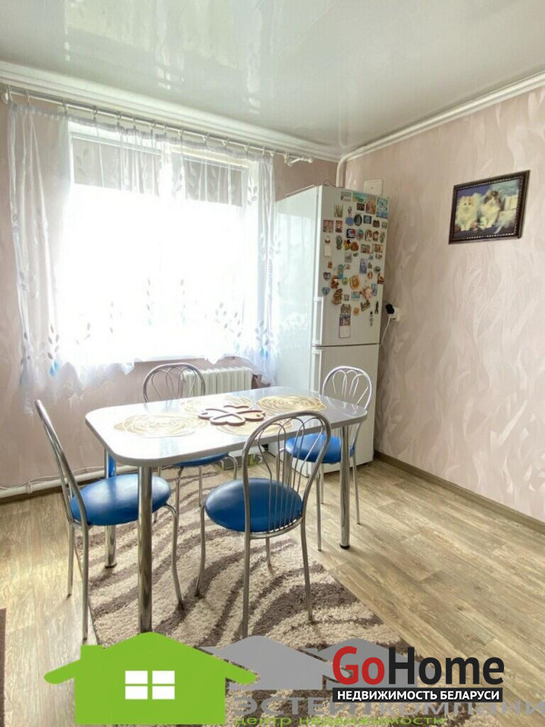 Продается 3х комнатная квартира в двухквартирном, одноэтажном доме в аг. Костени в 5 км от г. Слонима. Квартира с отдельным входом, общая площадь 68,4м2, жилая 41,7 м2, кухня 12,2м2. Санузел раздельный. В квартире установлен новый газовый котел и колонка, сделан аккуратный ремонт. Окна -ПВХ, новые межкомнатные двери, натяжные потолки, две входные двери- металлические. Квартира продается частично с мебелью. Дом из блока отштукатурен, кровля- шифер.