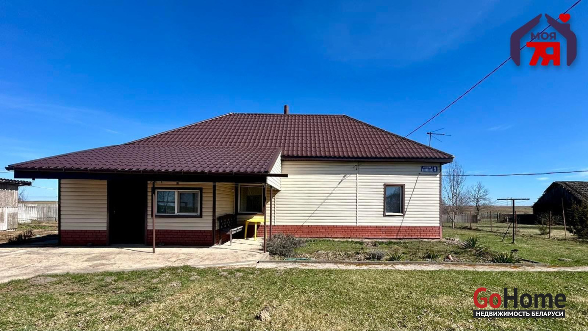 -Одноэтажный кирпичный дом, снаружи обшитый сайдингом, с кровлей из металлочерепицы — надёжно, практично и эстетично. Общая площадь составляет 45,6 кв.м., жилая — 28 кв.м.