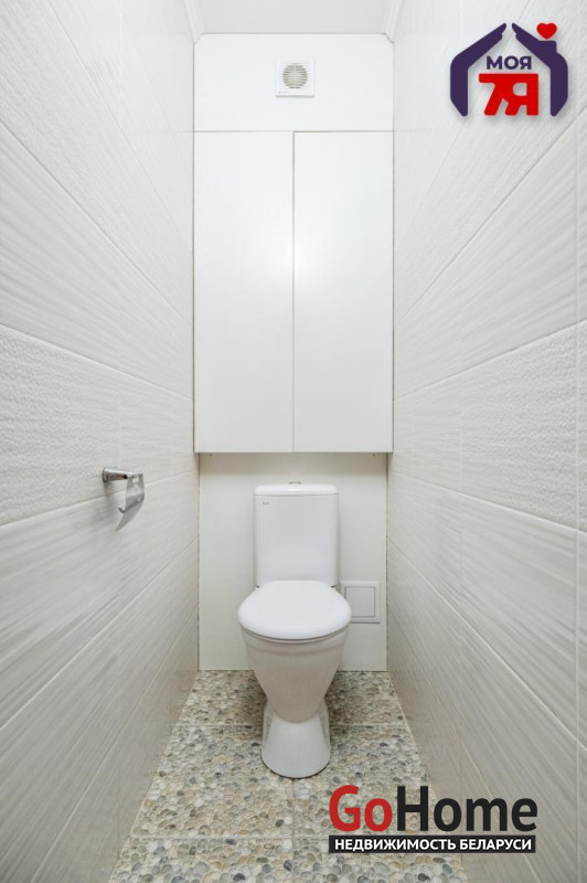 -Санузел раздельный, облицован качественной плиткой и современной сантехникой. Здесь оборудована встроенная система хранения: всё самое нужное всегда под рукой, при этом интерьер остаётся чистым и организованным.