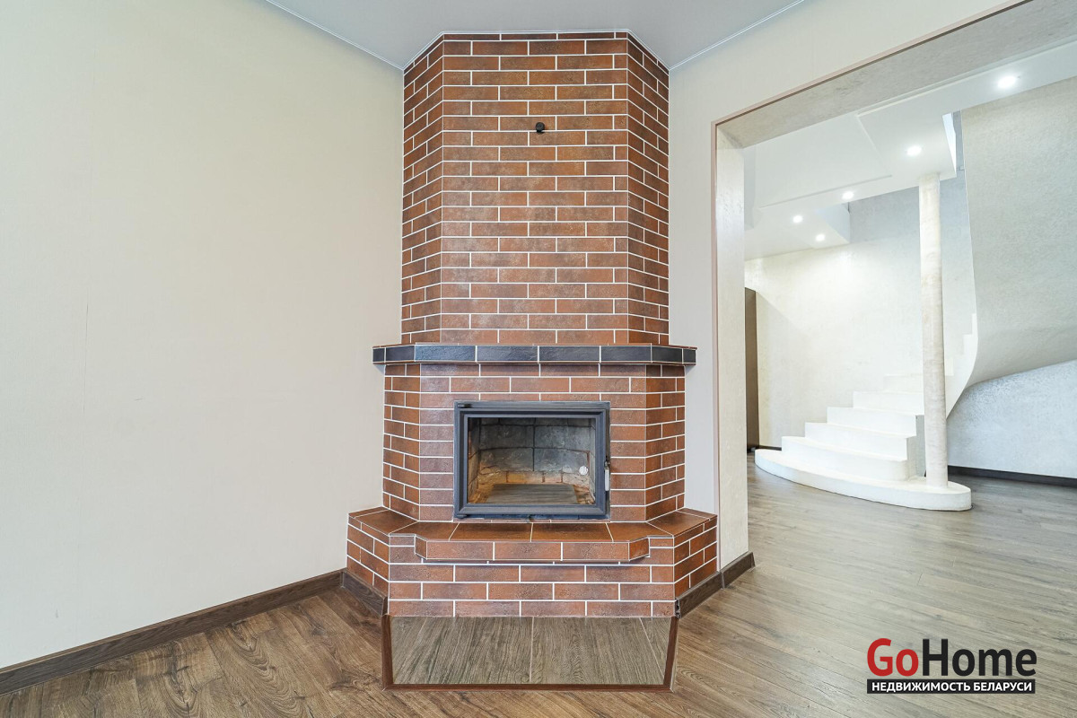 На первом этаже расположена просторная кухня и гостиная с камином и выходом на террасу.