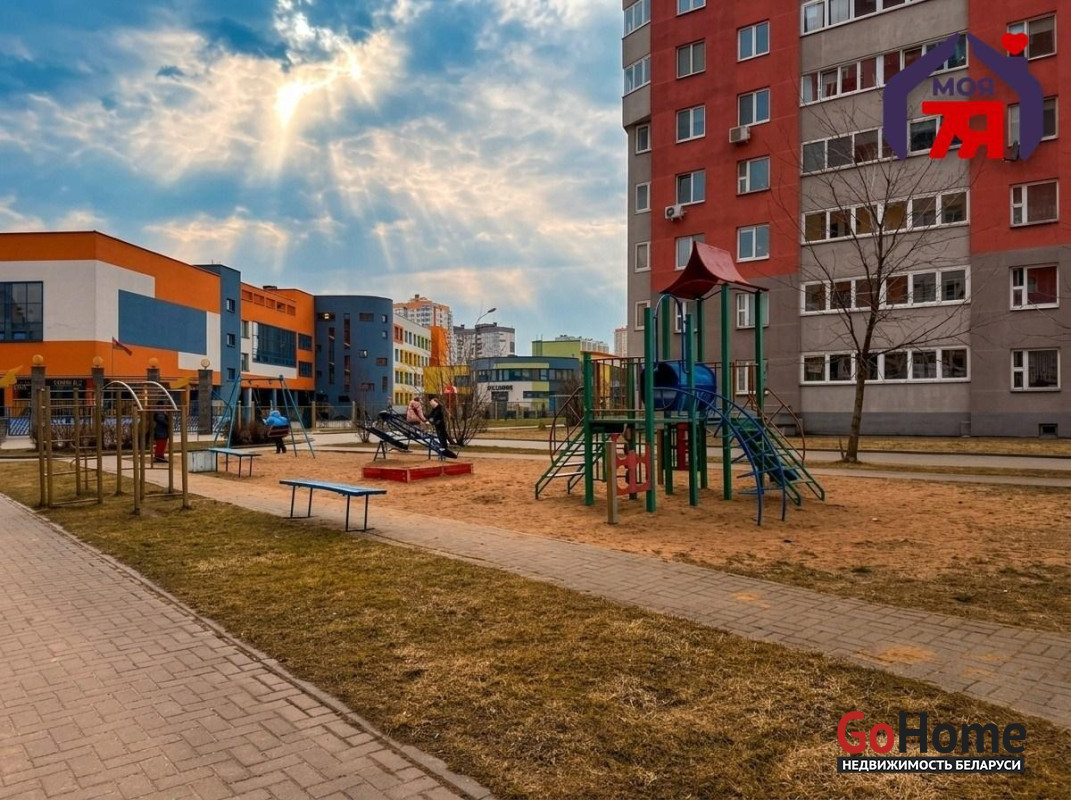 Для детей: Во дворе современные детские площадки. Рядом новая школа №2 с бассейном и детские сады — всё в шаговой доступности.Отдых: Вблизи находятся лесопарк Медвежино и парк Дививелка — отличные места для прогулок.Транспорт и магазины: Остановка общественного транспорта рядом с домом. Удобный выезд на МКАД. До метро «Каменная Горка» или «Петровщина» — 10–15 минут езды. Рядом супермаркеты («Евроопт», «Гиппо») и вся необходимая сфера услуг.