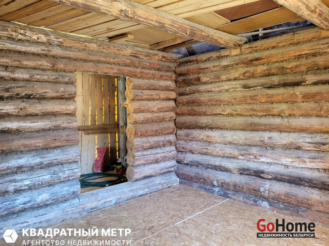 Дом небольшой, бревенчатый. Отличный ж/б фундамент. Рядом газ.