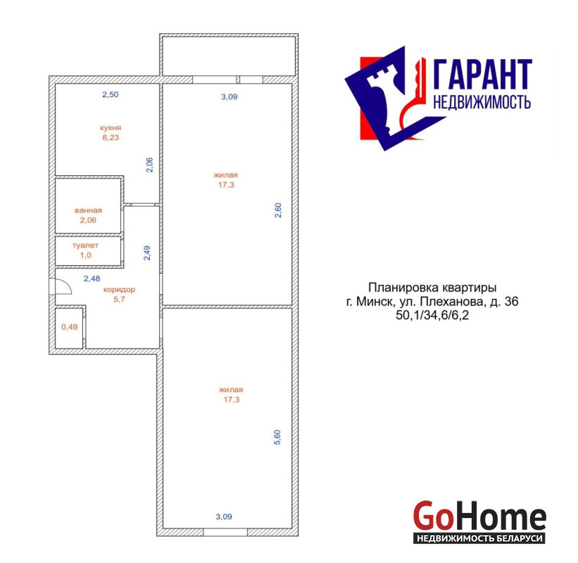 Продуманная грамотная планировка. Жилые комнаты правильной формы 17,3 м2 и 17.3 м2 на две стороны, коридор 5,7 м2, светлая кухня 6,2 м2, раздельный санузел;