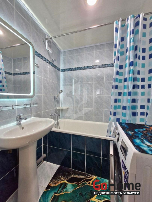 Санузел: Раздельный, выполнен в современной плитке. В ванной комнате установлена стиральная машина, есть зеркало с контурной LED-подсветкой.