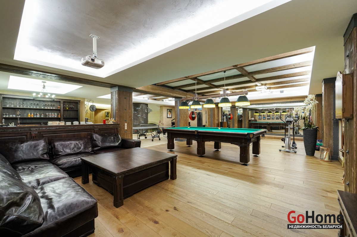 многофункциональное пространство в цокольном этаже (лаундж, домашний кинотеатр, барная зона, бильярд и акустический рояль)Отдельно выделен полноценный хозяйственный и инженерный блок.