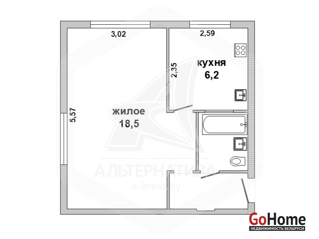 1-комнатная квартира, г. Брест, пр-т Машерова, 1959 г.п., 2 / 4 кирпич, 30,6 / 30,6 / 18,5 / 6,2, санузел совмещенный, подвал, деревянные межкомнатные двери, входная дверь металлическая, потолки - оклеены касетонами и натяжные (сатин, в кухне), полы - крашеная доска, стены оклеены обоями, в санузле стены окрашены, чугунная ванна, домофон. Кухонный гарнитур. Квартира в жилом состоянии. Район с развитой инфраструктурой. В шаговой доступности остановки общественного транспорта, школа, сад, магазины. Лот - 260507