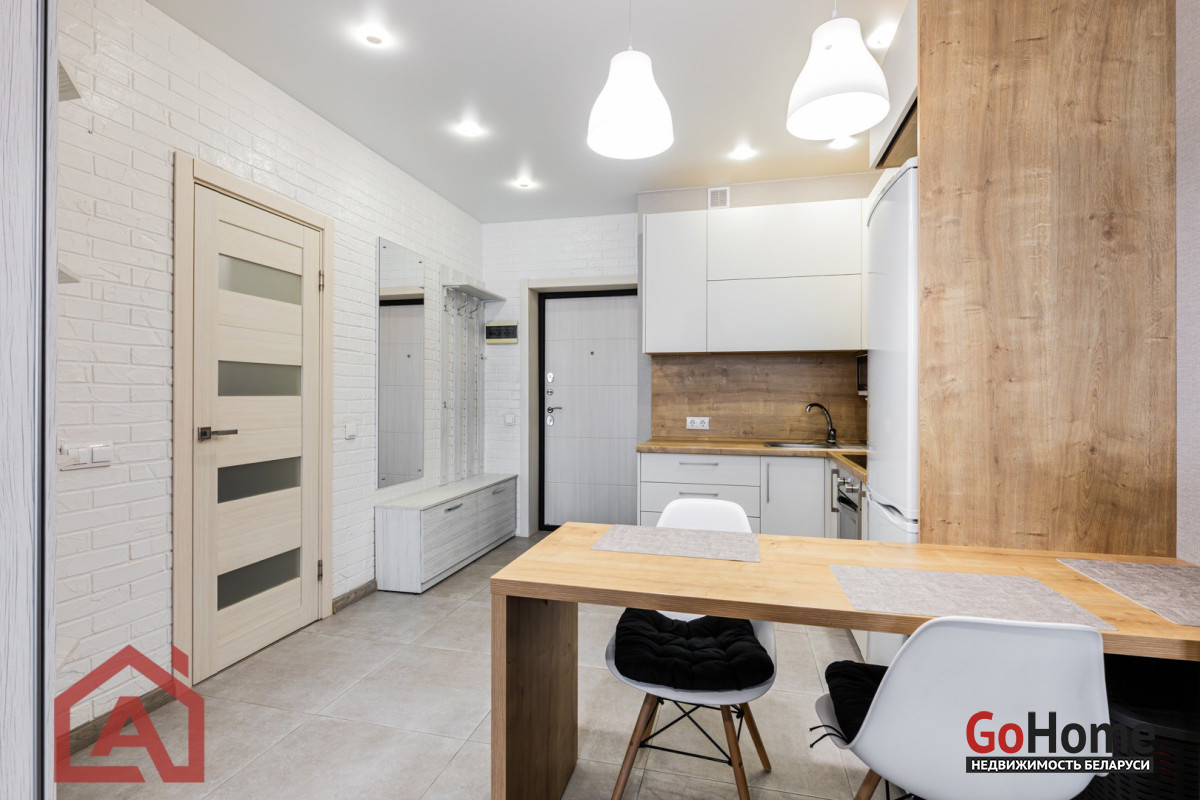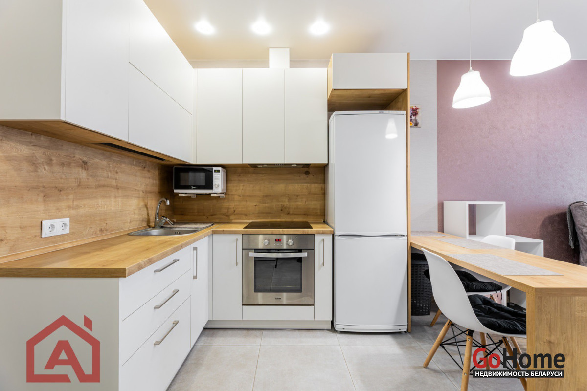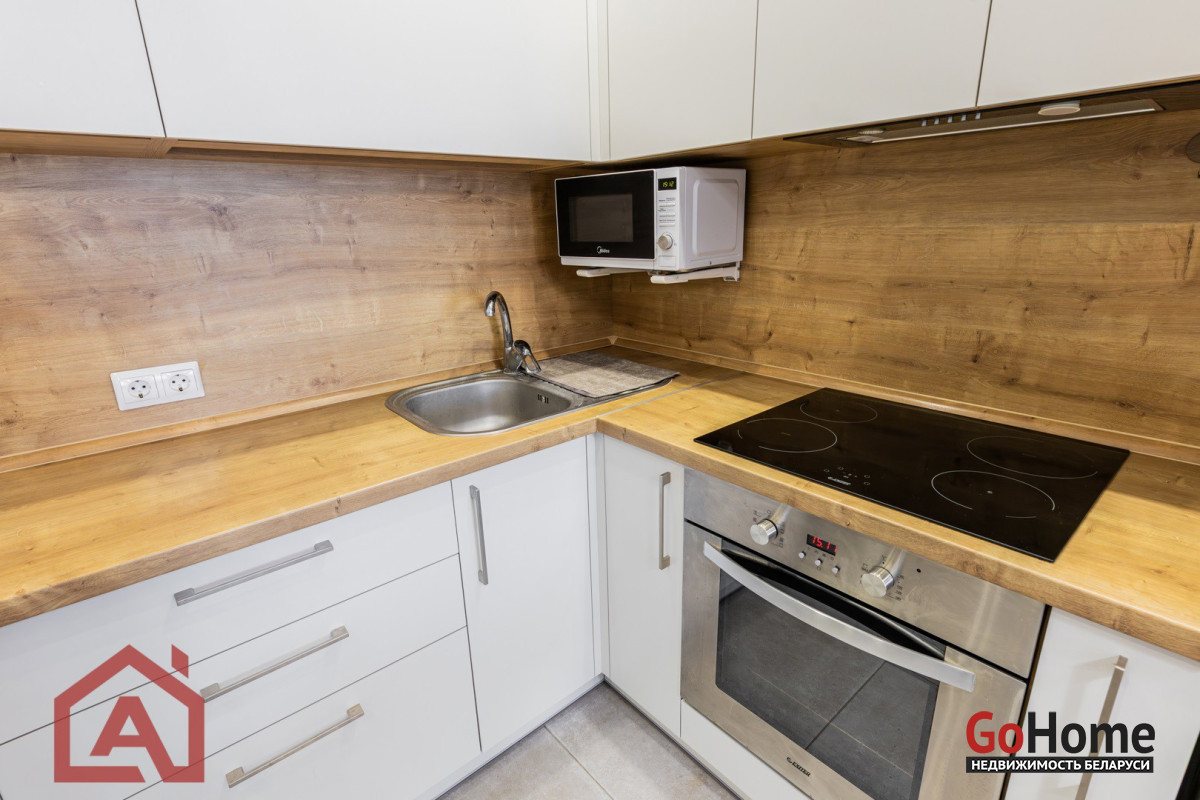 В квартире выполнен качественный ремонт. Встроенная мебель (кухня, шкафы) выполнены на заказ.