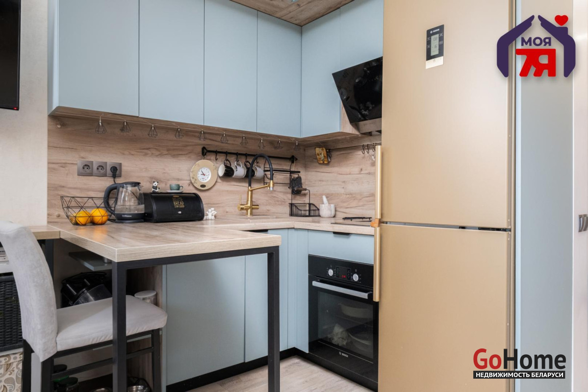 - Встроенная кухня оборудована современной техникой и качественной мебелью, которые остаются в собственности покупателя. Удобное рабочее пространство позволяет готовить с комфортом.