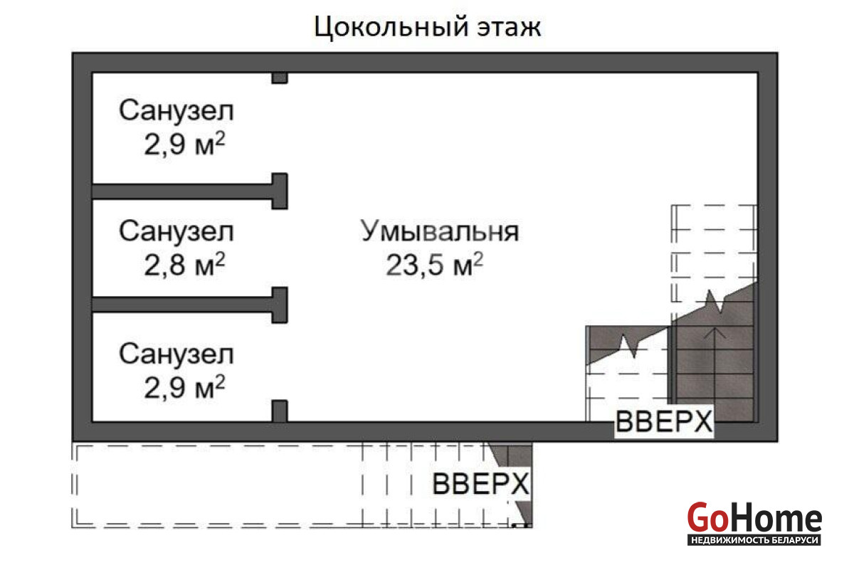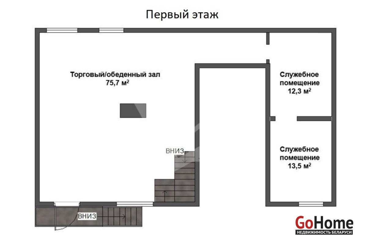 Помещение занимает первый и цокольный этажи жилого дома и имеет собственный вход с крыльцом, на цоколе расположен санузел.
