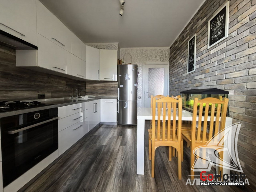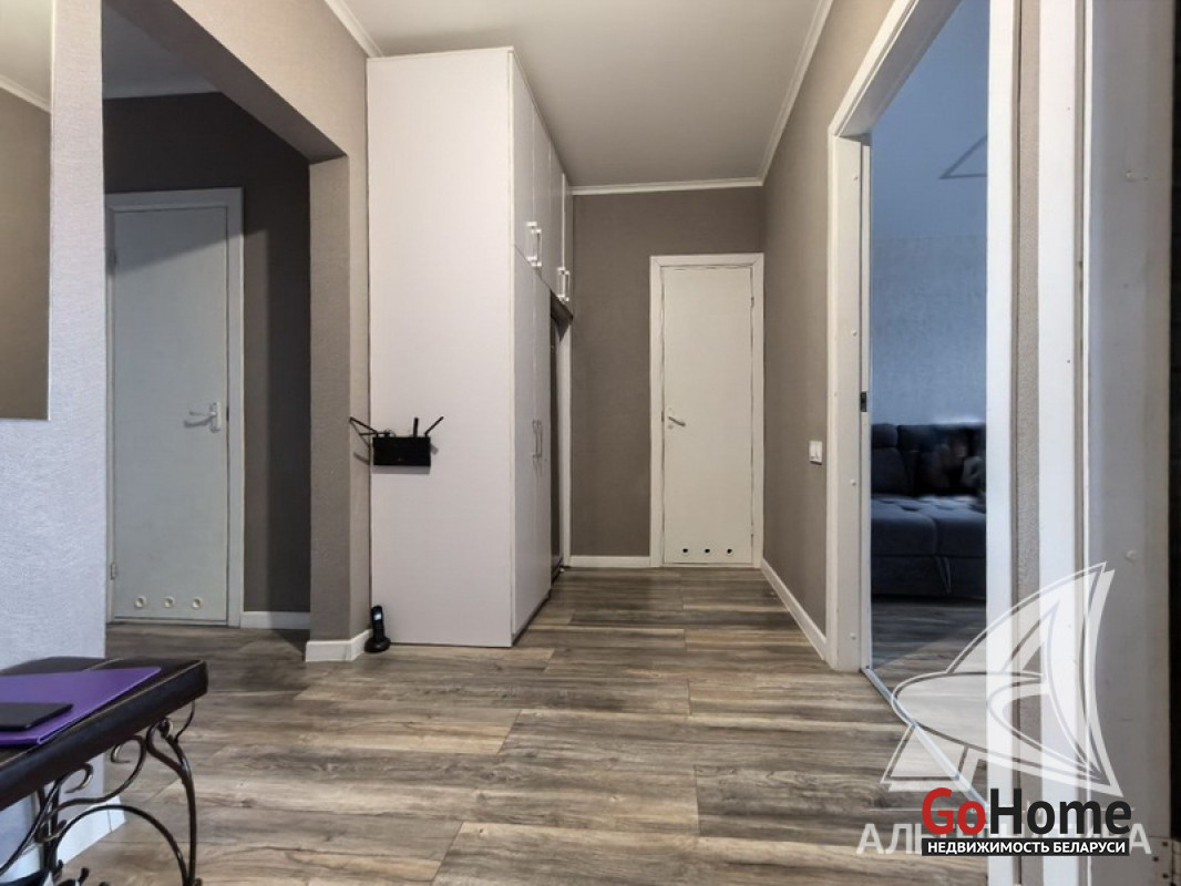 2-комнатная квартира, г. Брест, ул. Луцкая, 2016 г.п., 5 / 10 панель, 65,7 / 63,5 / 37,9 / 10,5, санузел раздельный, лоджия застеклена, стеклопакеты, деревянные межкомнатные двери, входная дверь металлическая, потолки - снежка (в кухне, в комнате, в коридоре) и натяжной (в гостиной, сатин), полы - ламинат, на стенах фактурная штукатурка и кирпич (в кухне), обои (в комнате, в коридоре) и дубовые панели (в гостиной), в санузле стены окрашены, на полу плитка, кондиционер, установлены фильтры очистки воды, телефон, домофон. Вся мебель и техника по договоренности. Квартира с хорошим ремонтом. Квартира расположена на две стороны. Чистый подъезд. Один грузопассажирский лифт. На площадке имеется закрытое место для колясок и велосипедов. Дом оборудован пандусом. Во дворе игровая детская площадка, парковка для автомобилей. Лот - 260525
