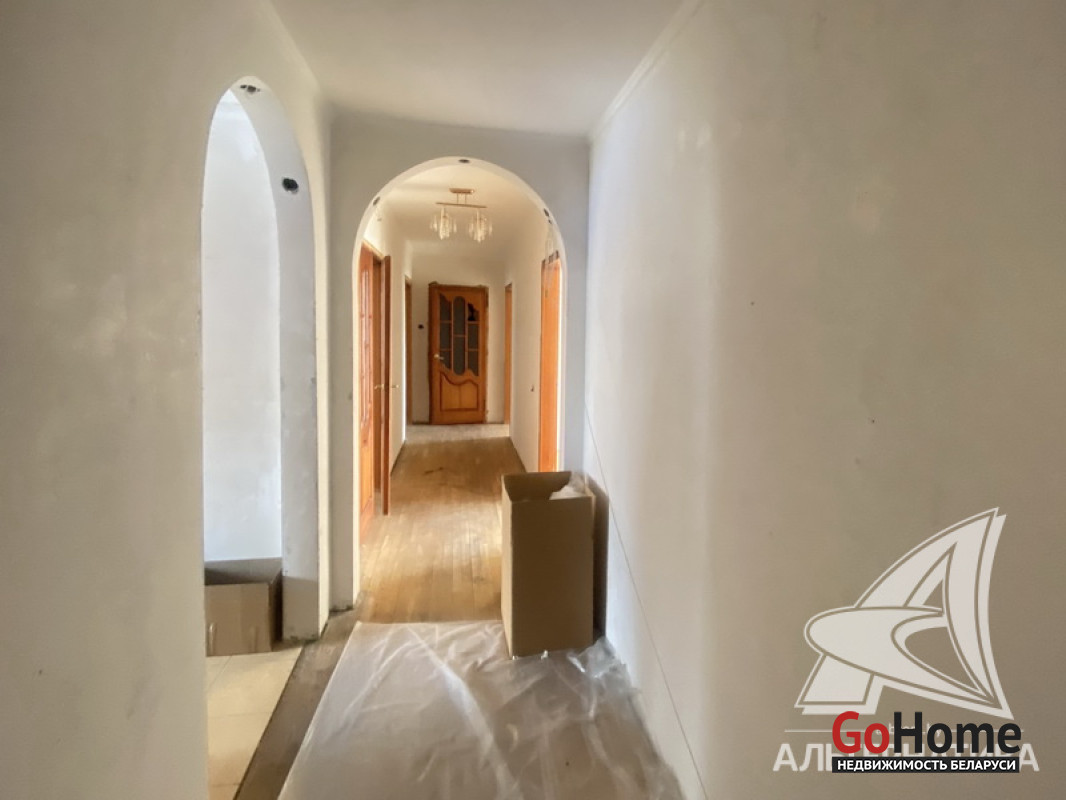 4-комнатная квартира, г. Брест, ул. Орловская, 1984 г.п., 4 / 9 панель, 87,9 / 80,8 / 52,7 / 9,5, санузел раздельный, три лоджии застеклены, стеклопакеты, полы - паркет. Квартира в жилом состоянии. Все окна выходят во двор. Один пассажирский лифт. Лот - 260520