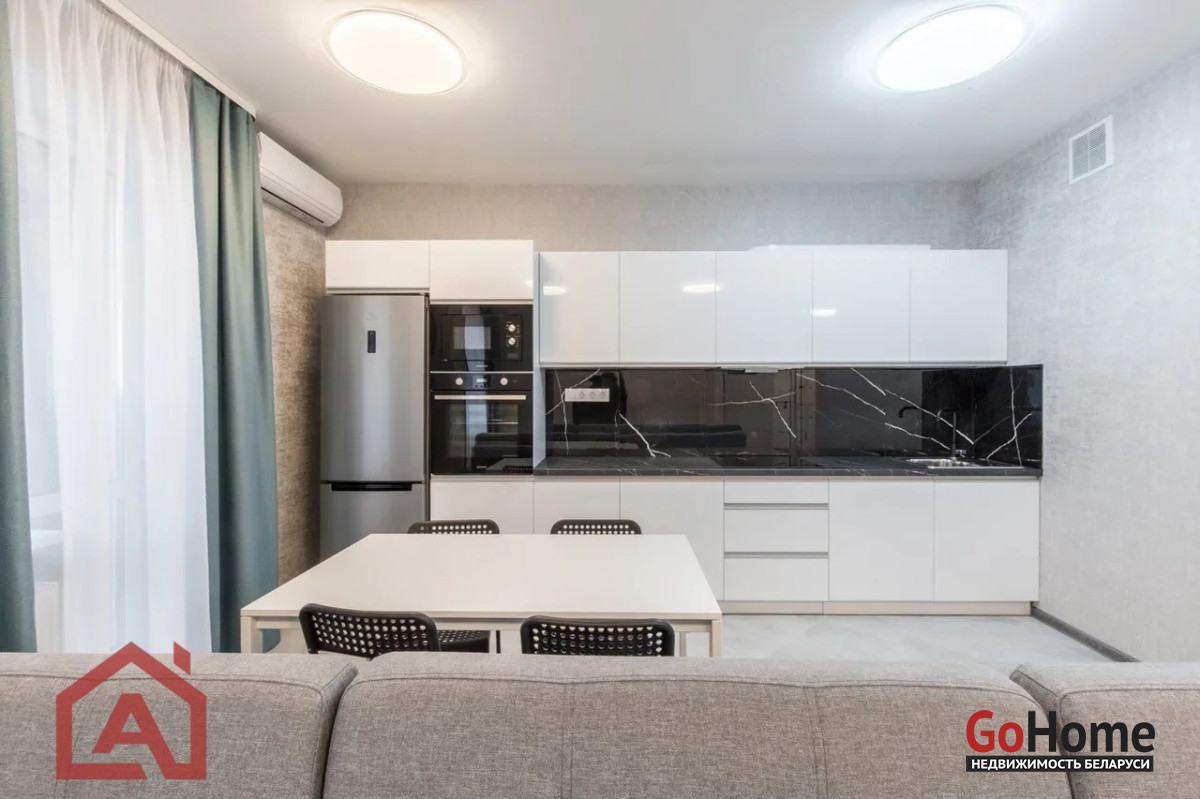 В квартире сделан качественный дорогостоящий ремонт, есть вся необходимая мебель и техника для комфортного проживания. Квартира студия, высокий этаж, красивый вид на проспект.
