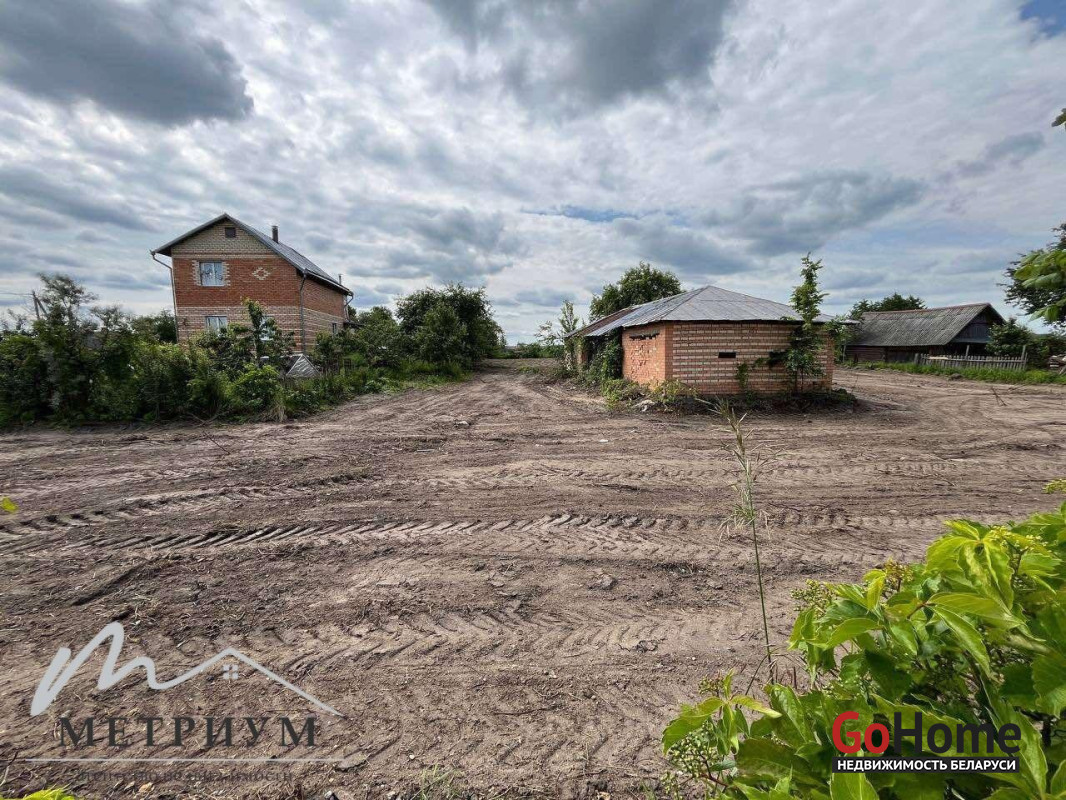 Участок ровный, есть кирпичная хоз постройка, колодец, плодоносящие груши и яблони. По участку разведены трубы для полива.