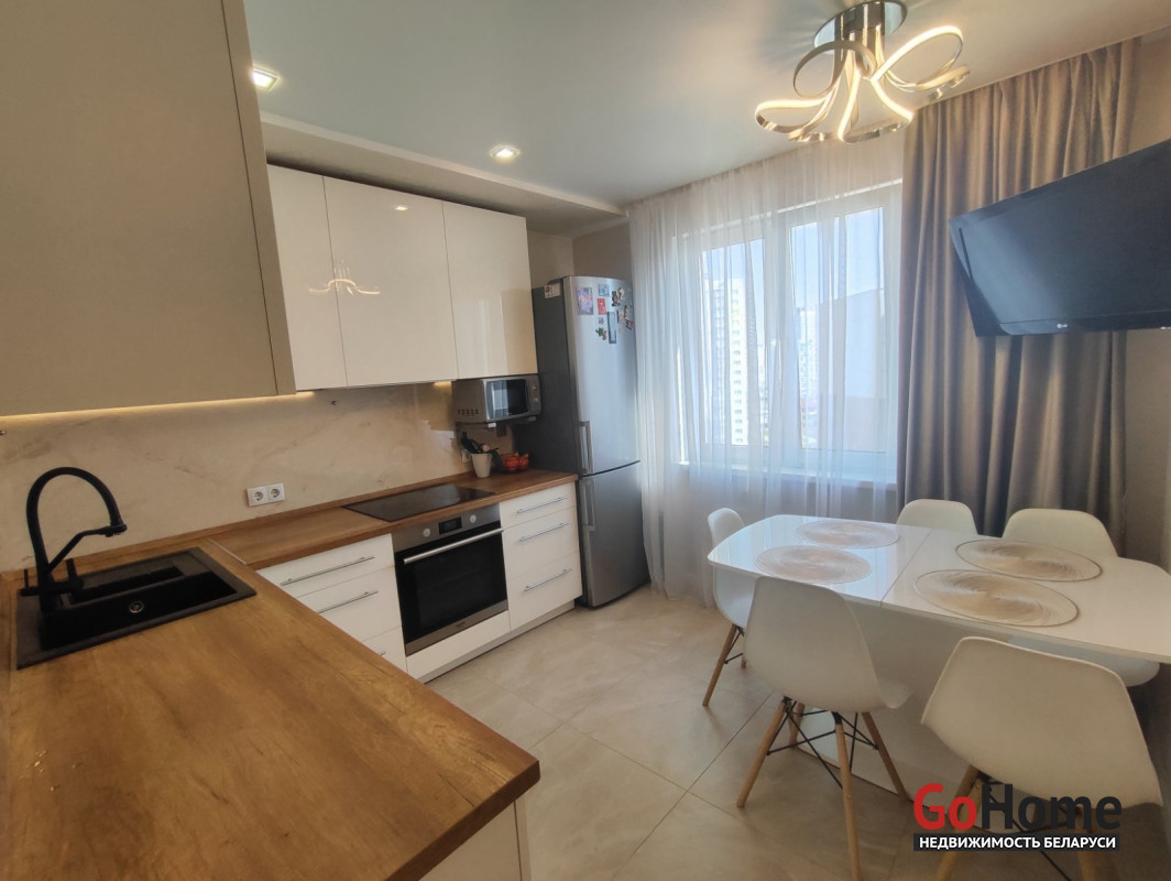 Предлагаемая к аренде квартира полностью укомплектована бытовой техникой и мебелью для комфортного проживания: холодильник, 4 современных ТВ, стиральная машина с функцией сушки, посудомоечная машина, печь СВЧ, чайник, посуда для индукционной панели. Для удобства предусмотрена вместительная гардеробная. Проведен высокоскоростной интернет, имеется просторная лоджия, а также место для хранения велосипедов и колясок.