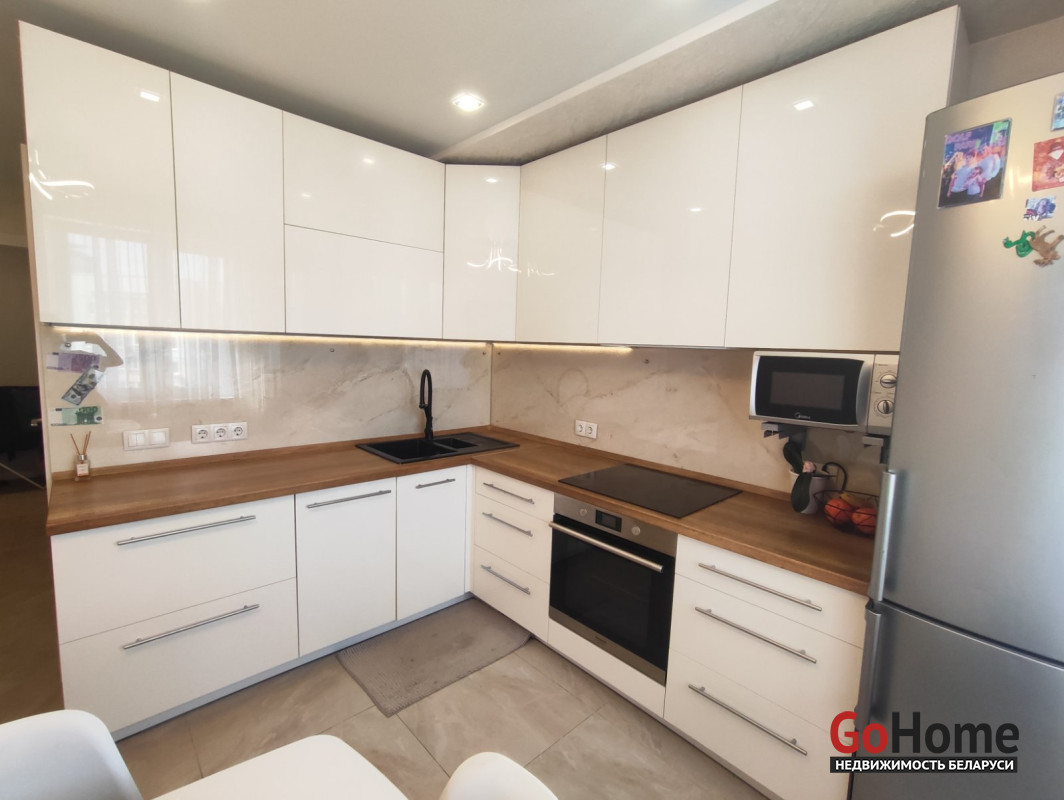Квартира общей площадью 85 кв.м. находится на 10 этаже 10-этажного дома, построенного в 2019 году. В ней выполнен современный дизайнерский ремонт премиум качества.