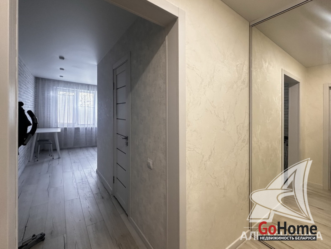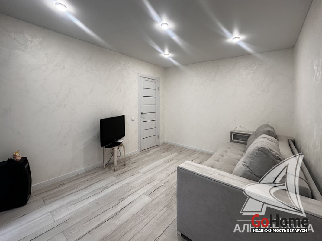 1-комнатная квартира, г. Брест, ул. Высокая, 1987 г.п., 3 / 5 панель, 34,8 / 32,5 / 12,1 / 9,5, санузел совмещенный, лоджия застеклена, стеклопакеты, межкомнатные двери - экошпон, входная дверь металлическая, натяжные потолки (сатин), полы (положены на стяжку) - ламинат, стены оклеены обоями, в санузле заменена сантехника, заменен полотенцесушитель, акриловая ванна, заменены сантехнические трубы, проведена новая электропроводка, домофон. Квартира с хорошим ремонтом. Тамбур на четыре квартиры. Чистый подъезд. Лот - 260531
